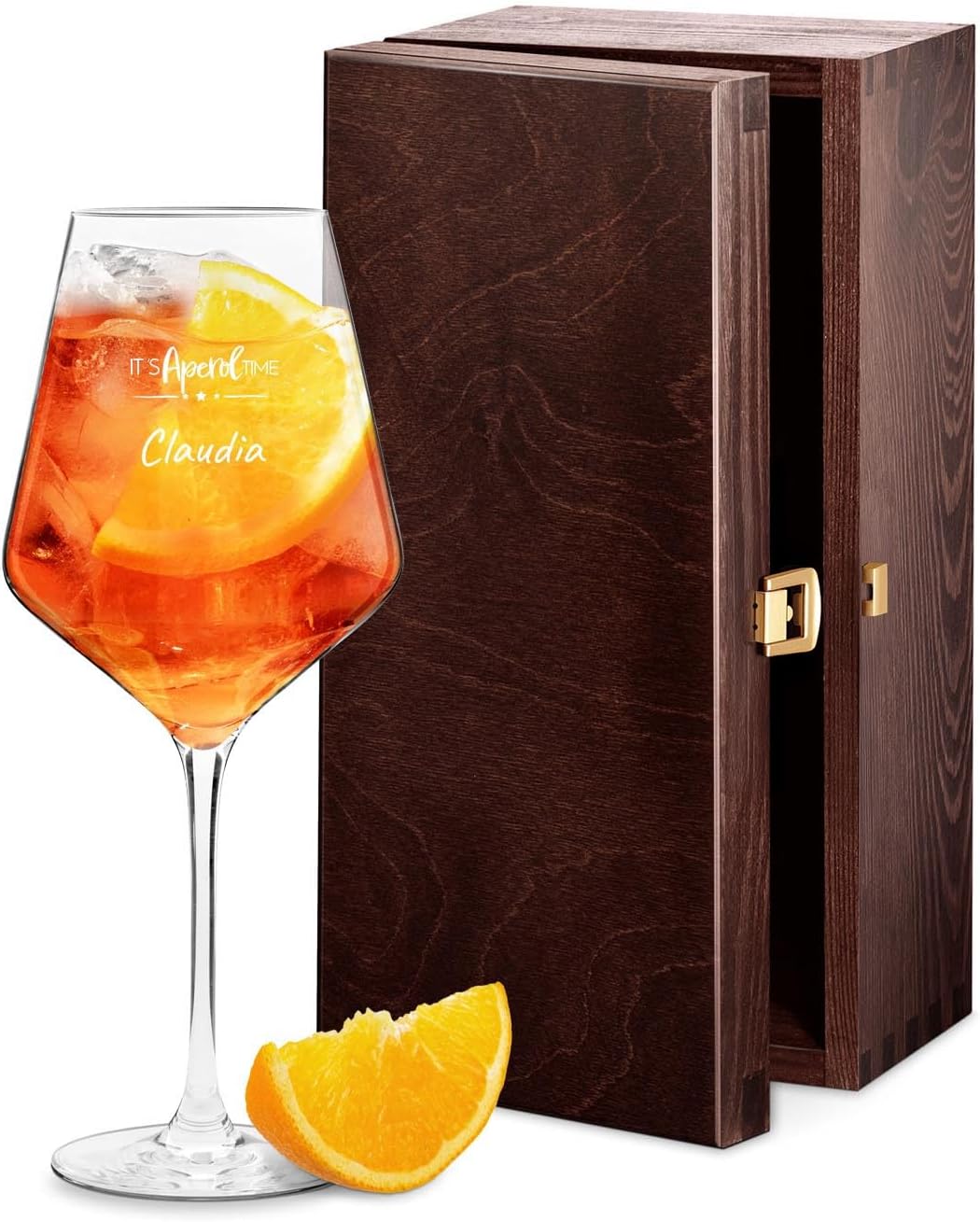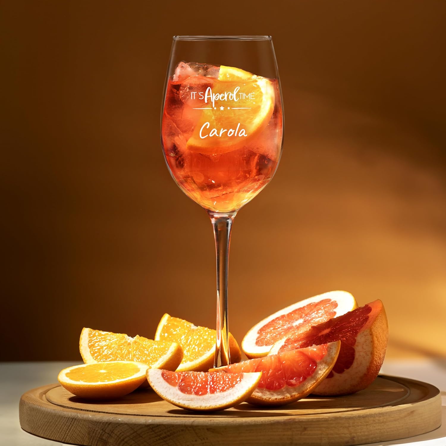 Чаша за Aperol Spritz Maverton, персонализирана с име - Гравирана коктейлна чаша - Подарък за Aperol - Подарък за рожден ден за жени - Персонализирани подаръци за жени - 350 мл или 530 мл - Aperol Time