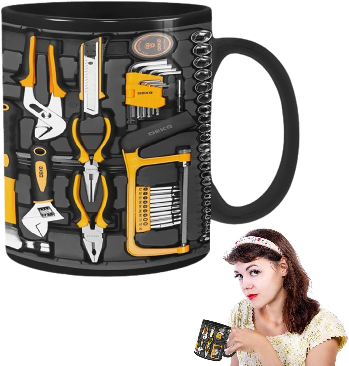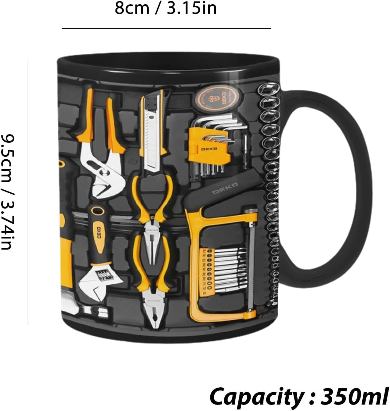 • Изработка: Тази забавна чаша за кафе демонстрира изключителна изработка с шарка на гаечен ключ и отвертка, което гарантира дълготрайна употреба. Стилният ѝ дизайн я прави отличен подарък за ентусиасти.