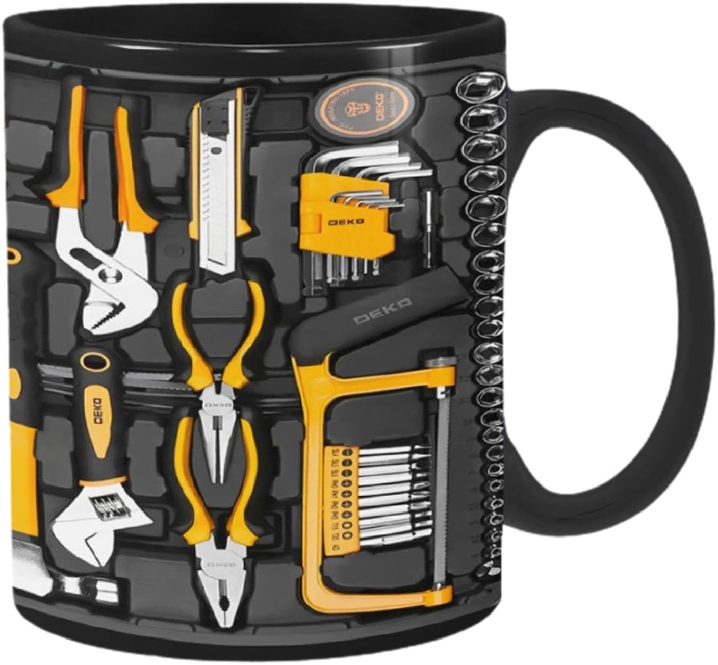 • Изработка: Тази забавна чаша за кафе демонстрира изключителна изработка с шарка на гаечен ключ и отвертка, което гарантира дълготрайна употреба. Стилният ѝ дизайн я прави отличен подарък за ентусиасти.