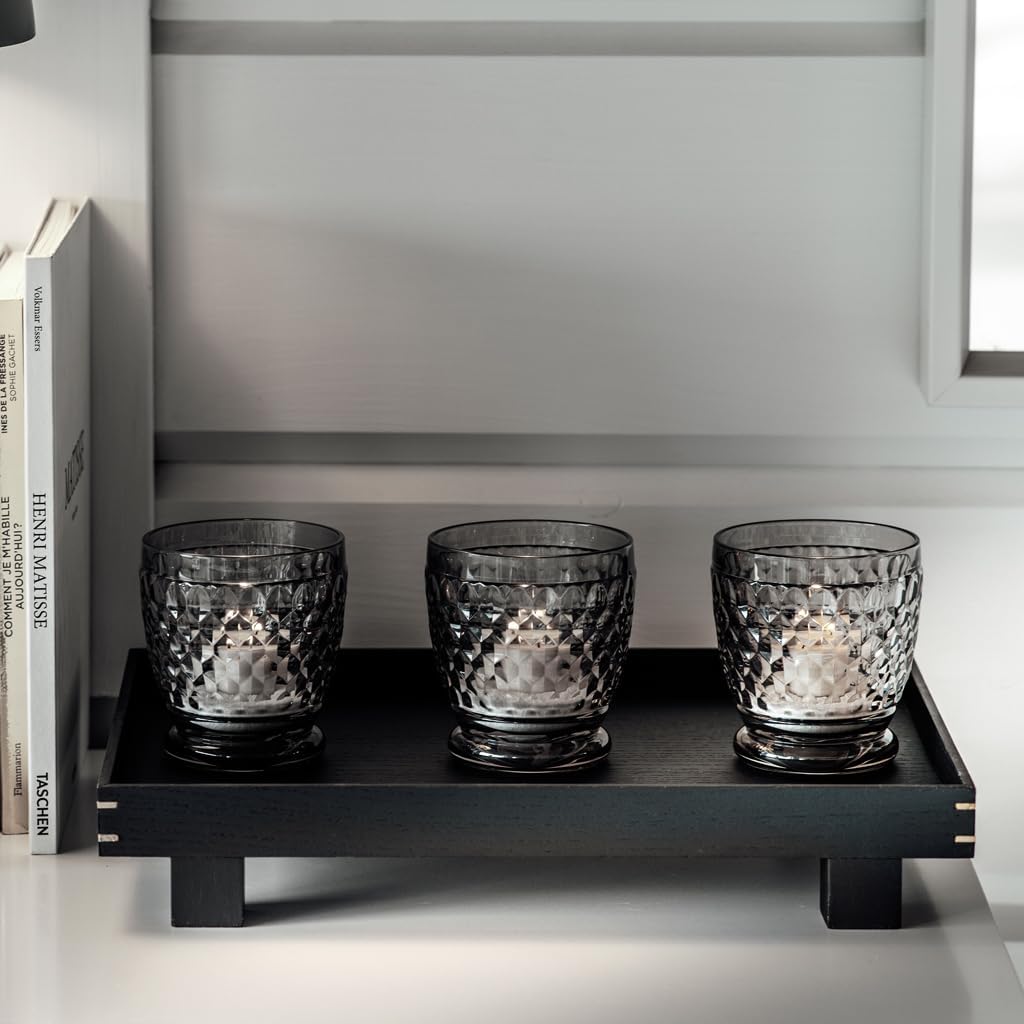 Видимите текстури и тактилните качества, съчетани с класически дизайнерски език във винтидж стил, в момента са основна тенденция в интериорния дизайн. Колекцията Boston, със своя фасетиран мотив, перфектно улавя тази естетика. Отличителният диамантен мотив пречупва светлината, карайки всяка чаша да блести като диамант и ѝ придава сияйна елегантност. Впечатляващият фасетиран мотив и висококачественото кристално стъкло правят колекцията Boston привлекателен фокусен елемент както за ежедневна употреба, така и за специални поводи.