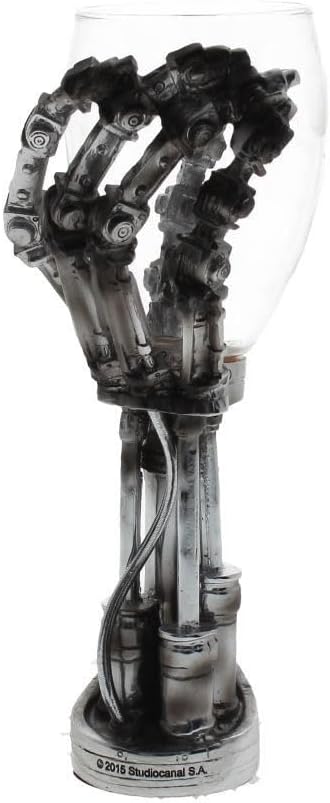 Тези официално лицензирани чаши изобразяват Терминатор Т-800, лишен от всякаква човешка плът, с открита хидравлика, насложена върху метален скелет, подиграваща се на човечеството. Червени очи гледат заплашително напред. Отляти от най-фината смола, преди да бъдат щателно ръчно боядисани, те разполагат с подвижна вложка от неръждаема стомана за лесно почистване. Перфектният начин да защитите напитката си от заплахата на андроидите.