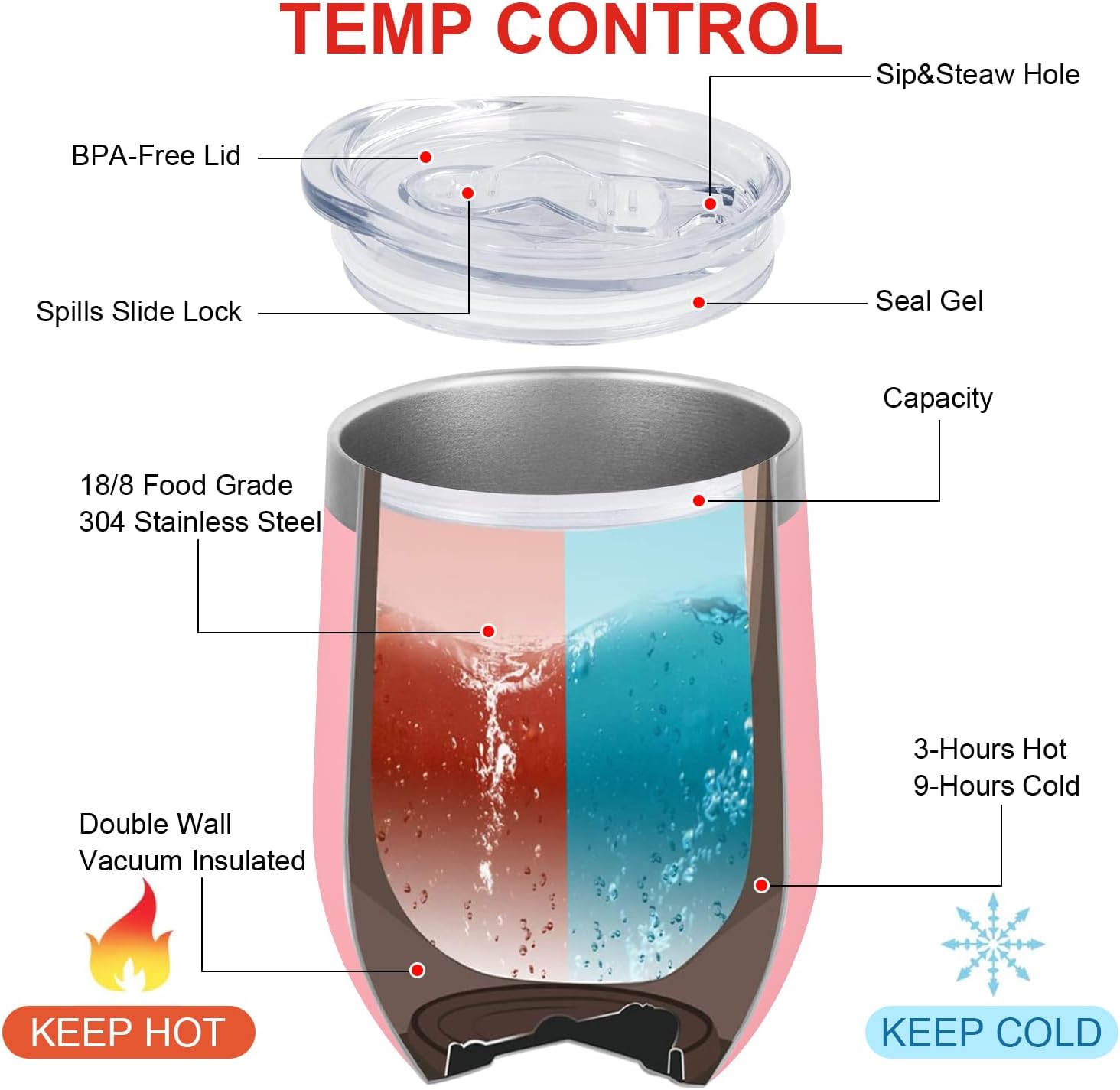 Die hervorragende Technologie hält Ihre Getränke bis zu 9 Stunden kalt und bis zu 3 Stunden heiß, für alle Arten von heißen und kalten Getränken wie Wein, Kaffee, Bier, Saft usw., hält Ihren Wein oder Kaffee auf der perfekten Temperatur.