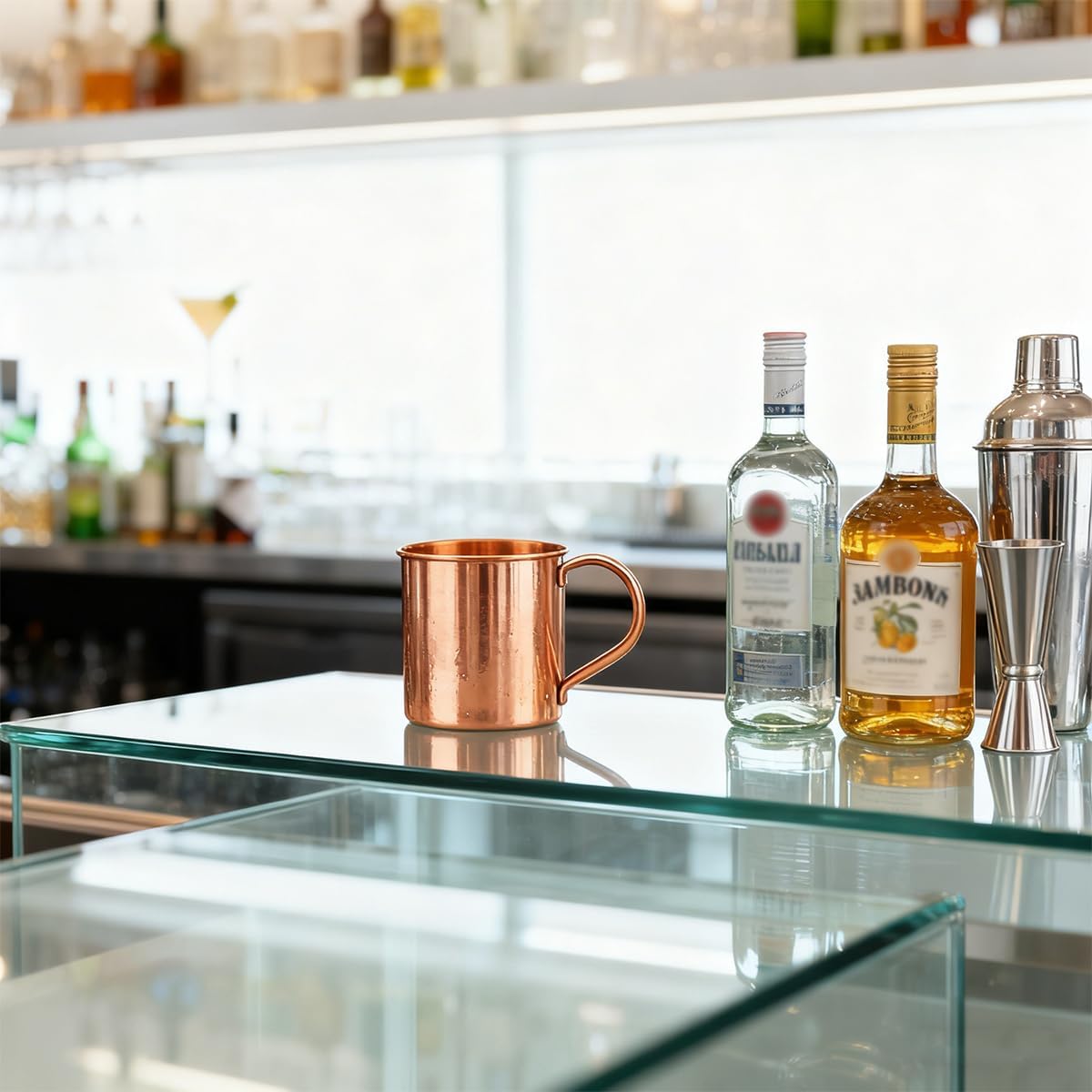 Чистата мед осигурява ледено студено усещане директно върху устните ви, а металът поддържа напитката ви свежа. Включената медна чаша за шотове улеснява измерването на напитките, а чашата осигурява освежаващо изживяване за всякакъв вид коктейл.