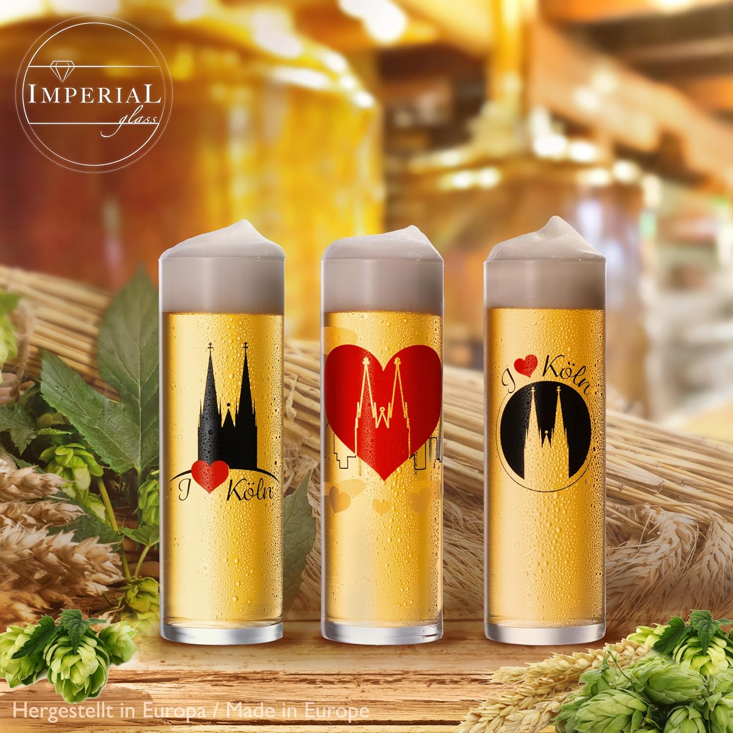 KÖLSCH GLASSES COLOGNE: Щампата върху чашата Kölsch включва детайлно изображение на Кьолнската катедрала и логото "I love Cologne". Тези чаши наистина показват страстта на Кьолн! Те са задължителни за всяко парти.