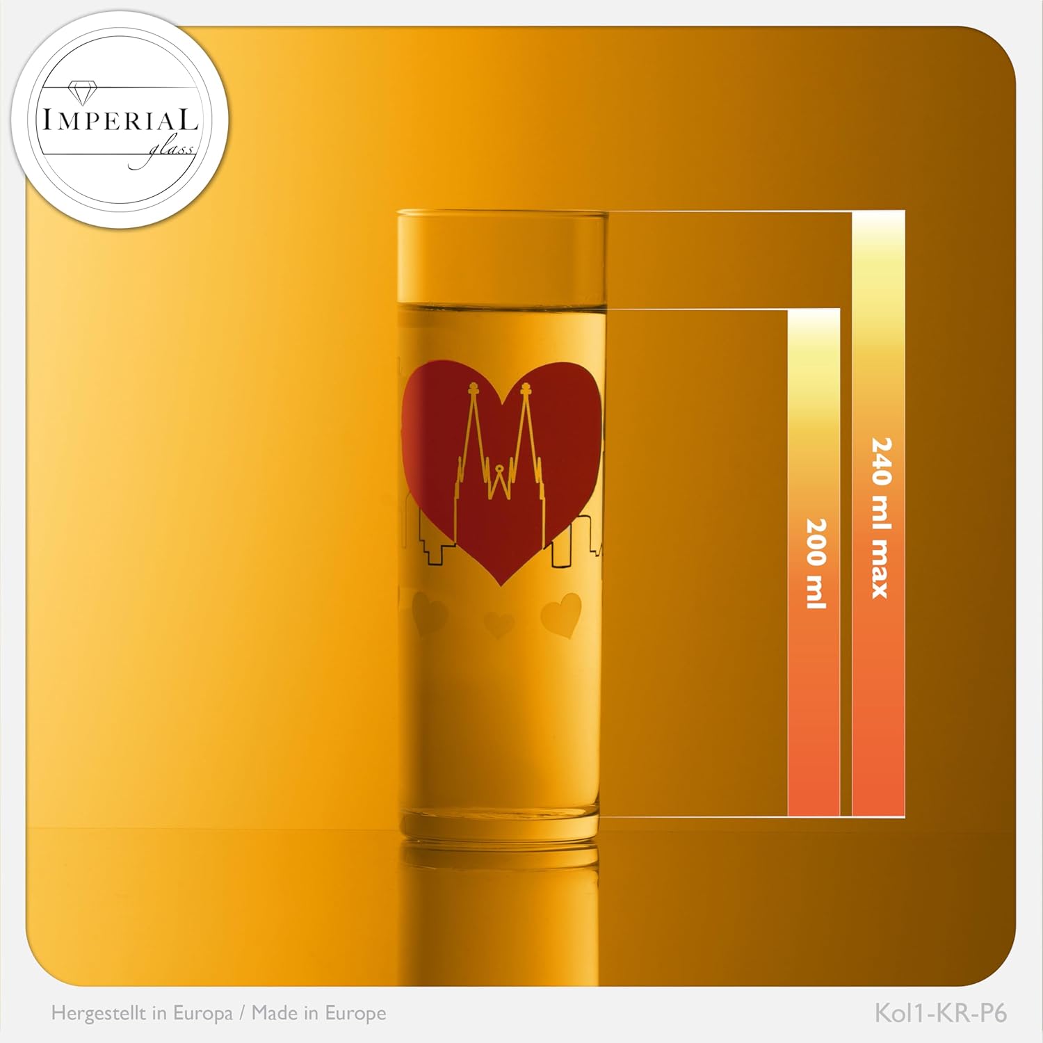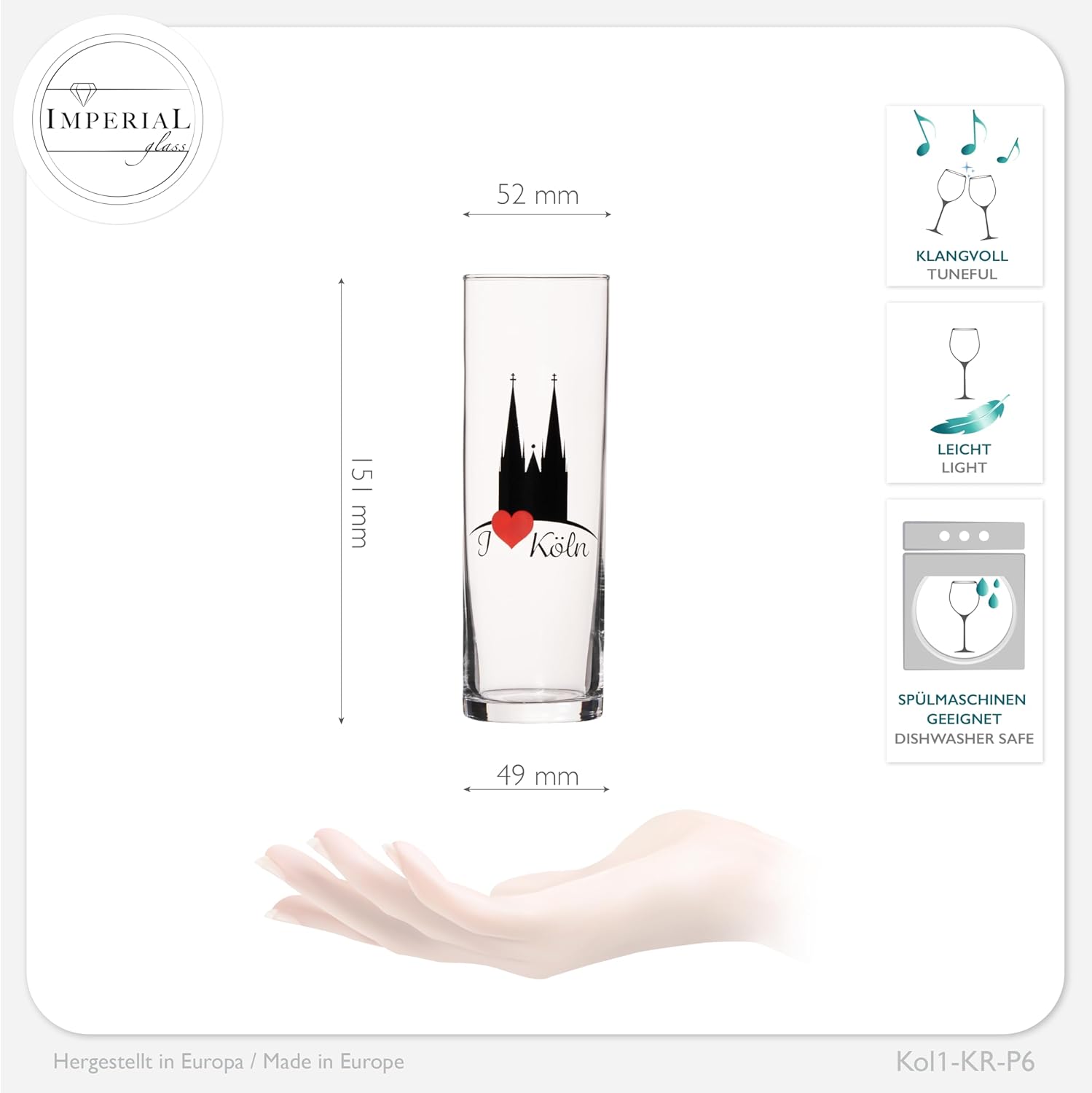 и други събития . Бирените чаши с дизайни са подходящи за съдомиялна машина до известна степен и трябва да се мият само при температури до 60 градуса по Целзий без агресивни препарати. Затова се препоръчва ръчно миене. Комплектът включва 6 стъклени блокчета с три различни мотива на Кьолн. (Декорациите, показани на снимките, не са включени.) Висококачествените стъклени основи от фабриката в Кросно за IMPERIAL Glass са отпечатани с детайлни, висококачествени дизайни.