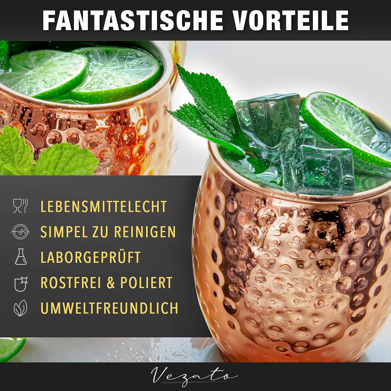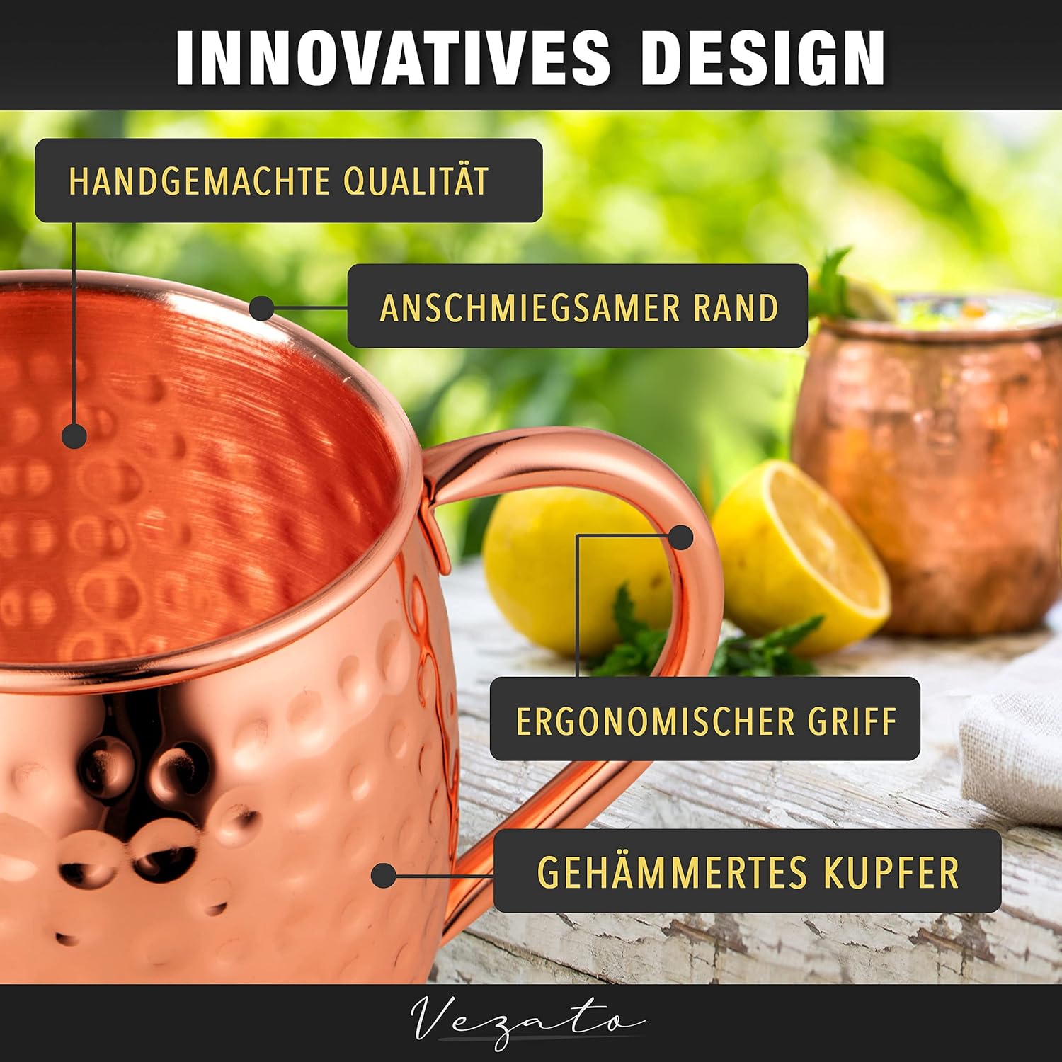• ПЪРВОКЛАСНО КАЧЕСТВО – Нашите висококачествени медни чаши впечатляват не само със своята издръжливост: с тези чаши Moscow Mule всяка напитка се превръща в уникално преживяване. Независимо дали става дума за Moscow Mule, джин с тоник или коктейли – удоволствието е гарантирано!