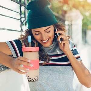 • 【Чаша с голям капацитет】Големият капацитет на тази чаша за балон чай със сламка е стандартен размер за чаени чаши, които се намират в повечето магазини, и е лесно подходяща и за повечето ледени кафета. Чашата за многократна употреба с балон чай е ергономично проектирана и пасва идеално в ръката ви и в стандартните поставки за чаши в колата.
