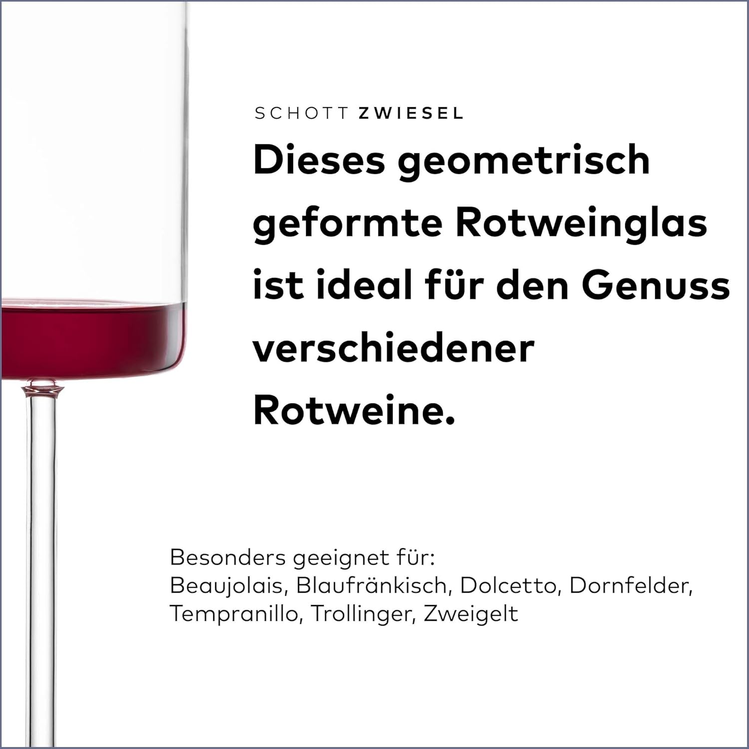 • Модерна чаша за бяло вино: Подходяща за разнообразие от бели вина, тази чаша за вино, със своята геометрично и линейно оформена купа, привлича всички погледи.