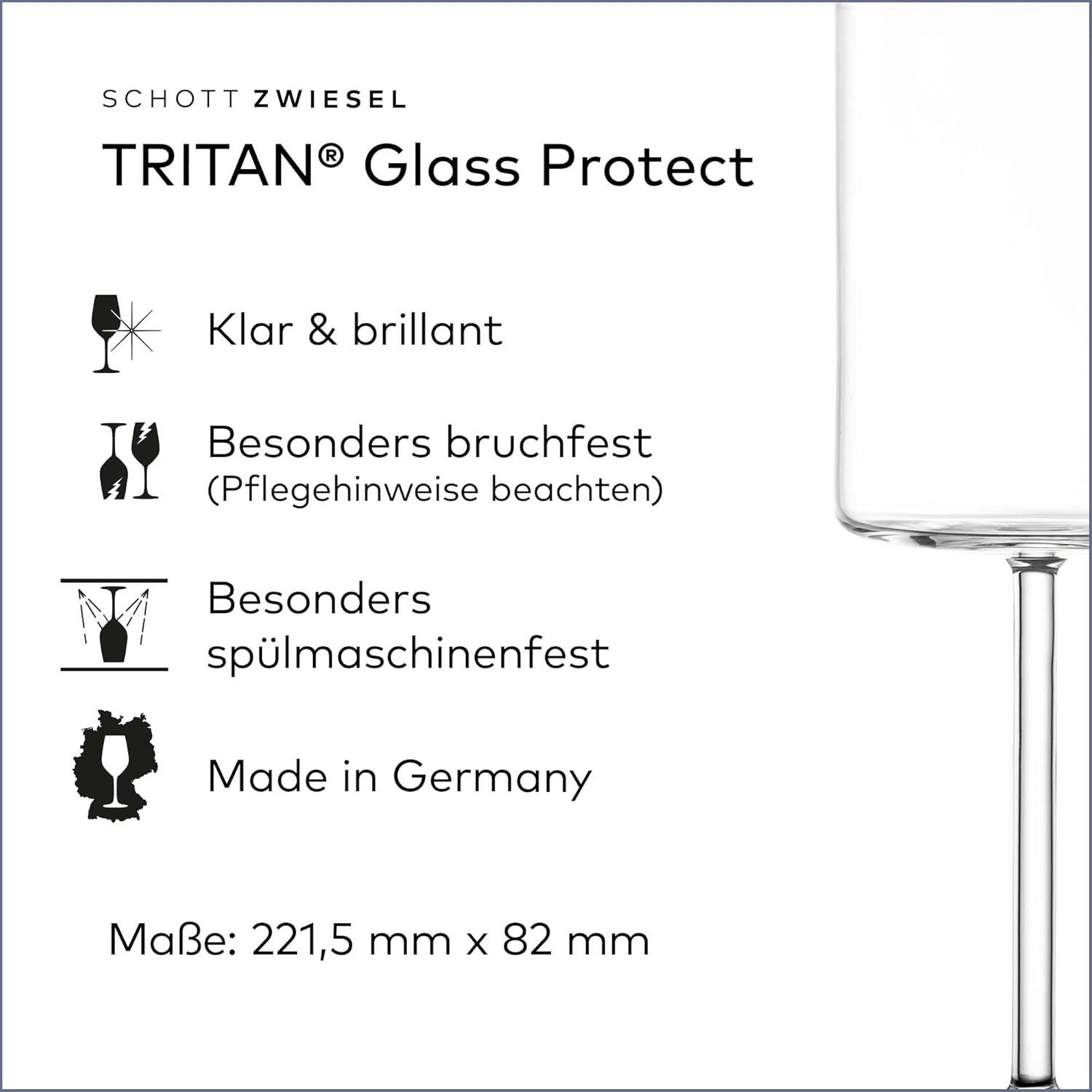 • Произведено в Германия: Нашите чаши за вино са произведени в Германия и са особено издръжливи благодарение на специалната технология TRITAN Glass Protect.