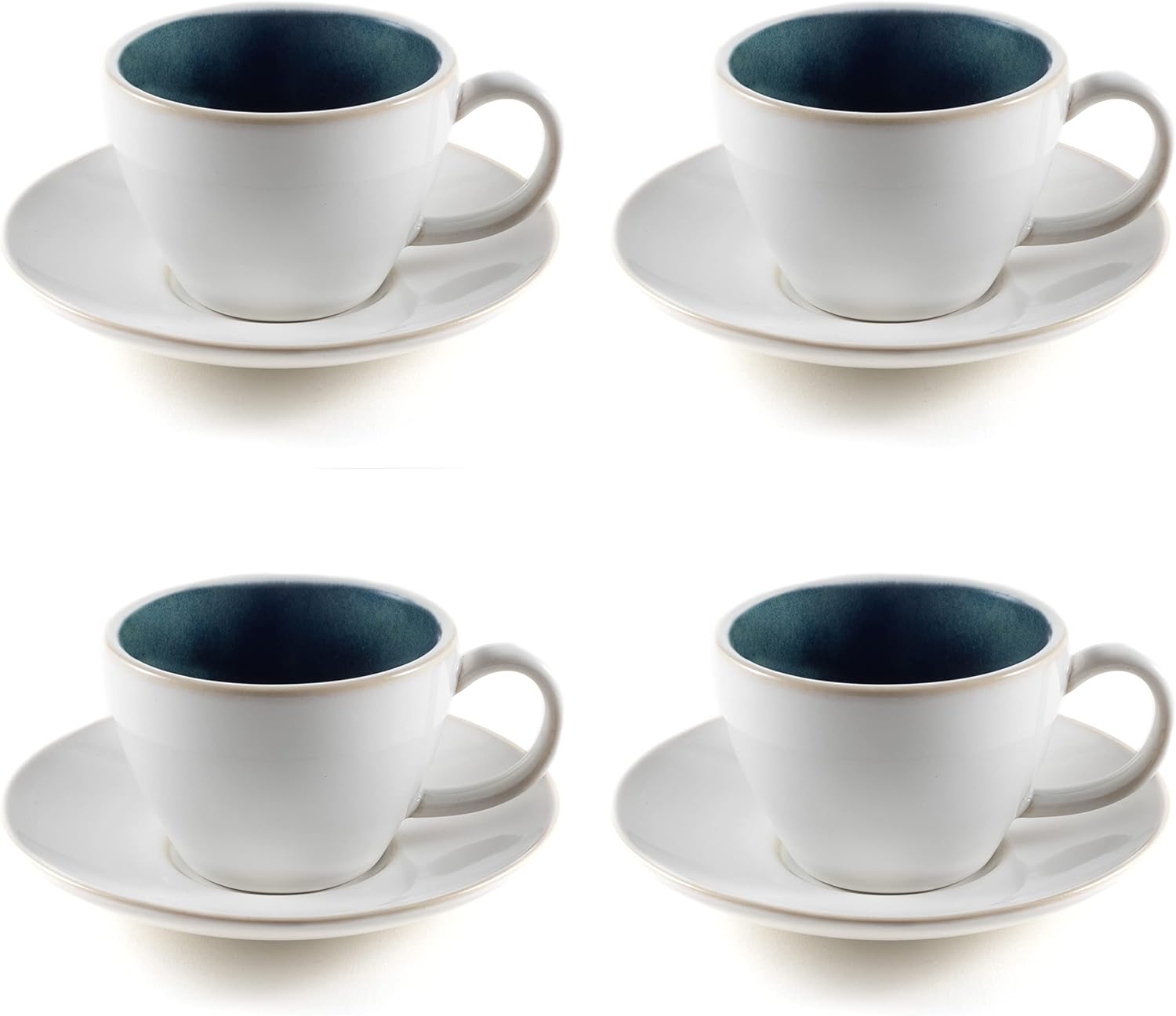 Чаши за капучино, комплект от 4 (180 мл) от керамика - Висококачествени и дебелостенни чаши за кафе с чинийки (сини)