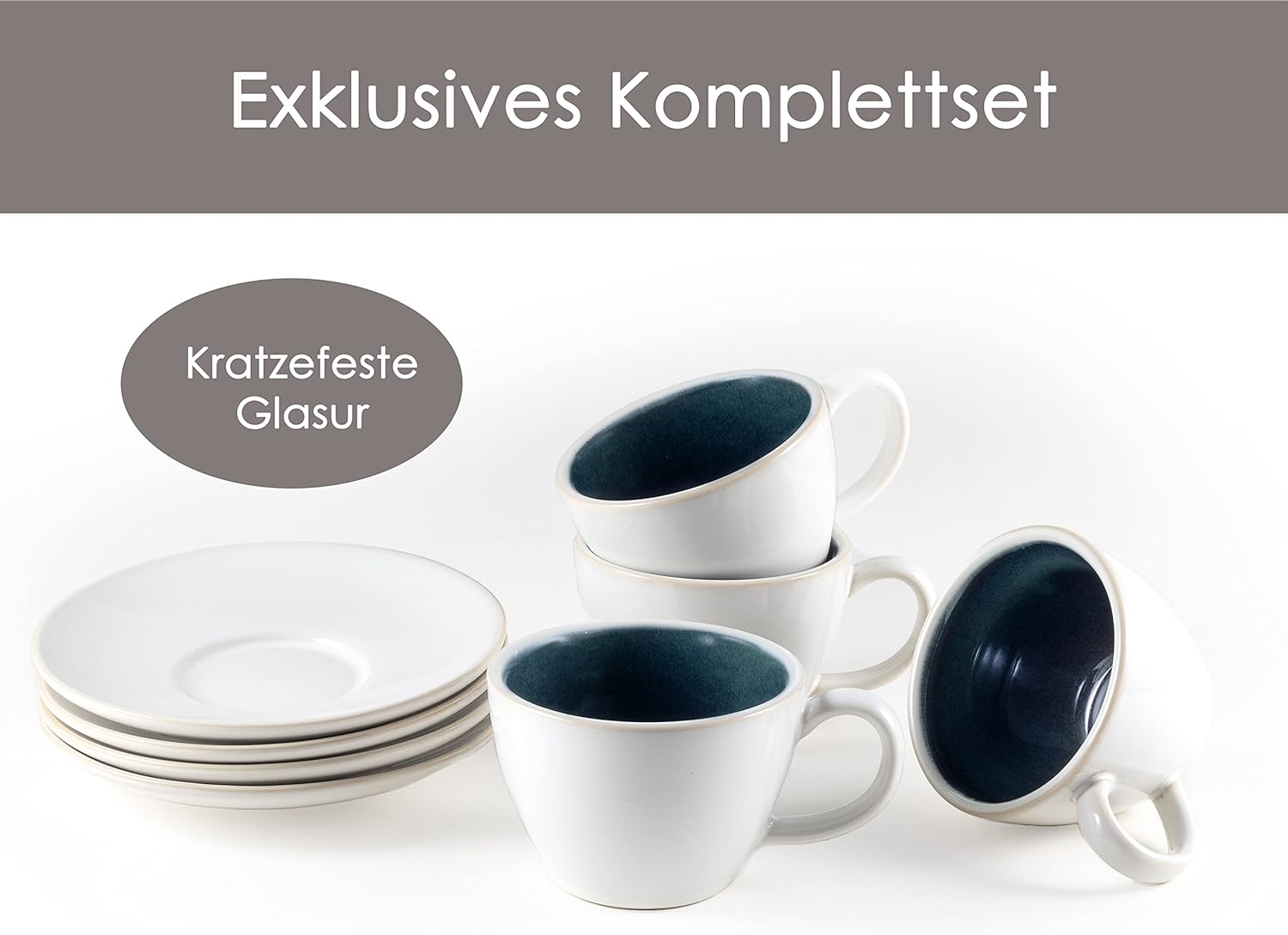 • ВИСОКОКАЧЕСТВЕНА КАМЕНИНА: Чашите за капучино Hanseküche са изработени от дебелостенна каменина, която задържа топлината дълго време.