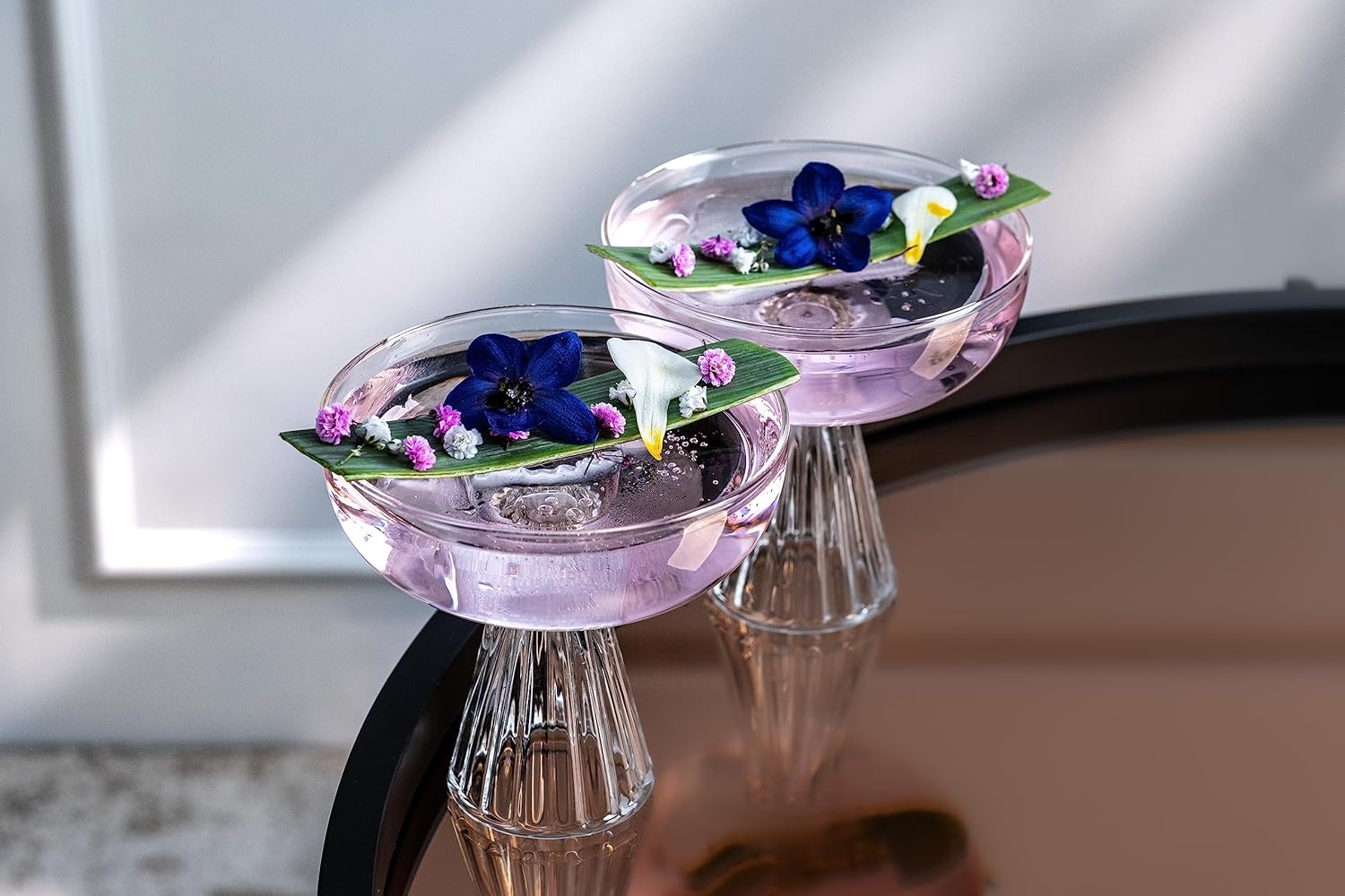 • ТЕЧНА ЕЛЕГАНТНОСТ – на една ръка разстояние. Подобрете коктейлното си изживяване с тези впечатляващи парижки чаши тип купе от модерната колекция стъклени изделия на Glassique Cadeau. Вдъхновени от архитектурните бижута и креативната коктейлна сцена на Града на светлините, тези елегантни чаши от 235 мл са оформени специално за класически и съвременни коктейли, както и за шампанско.