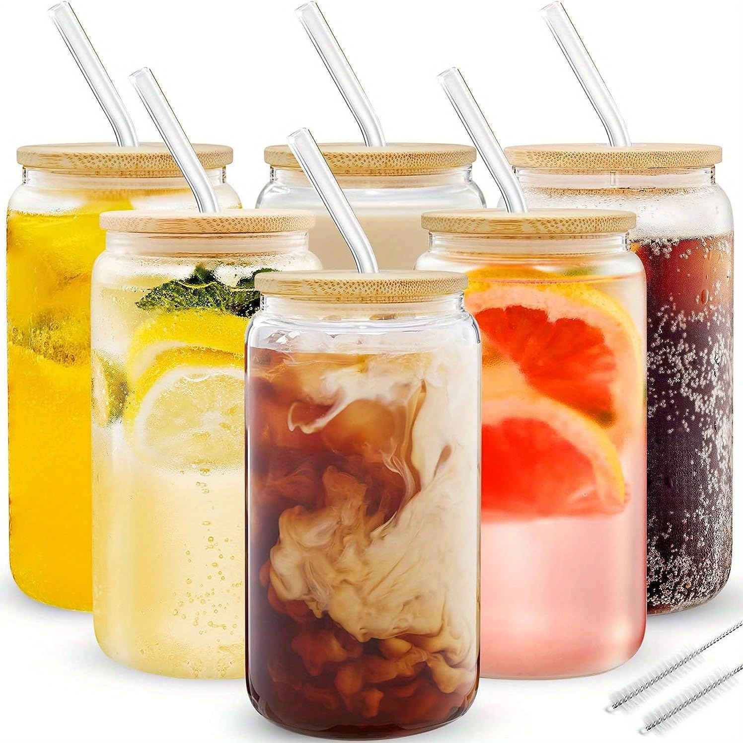 Чаши за коктейли 500 мл/16 унции с капаци и стъклени сламки, 6 броя, чаши за дълги напитки с бамбукови капаци за коктейли, уиски, бира, ледено кафе, сода, сокове (6 броя)