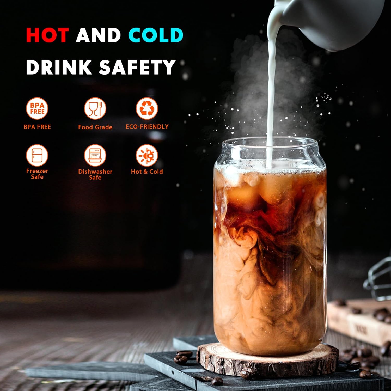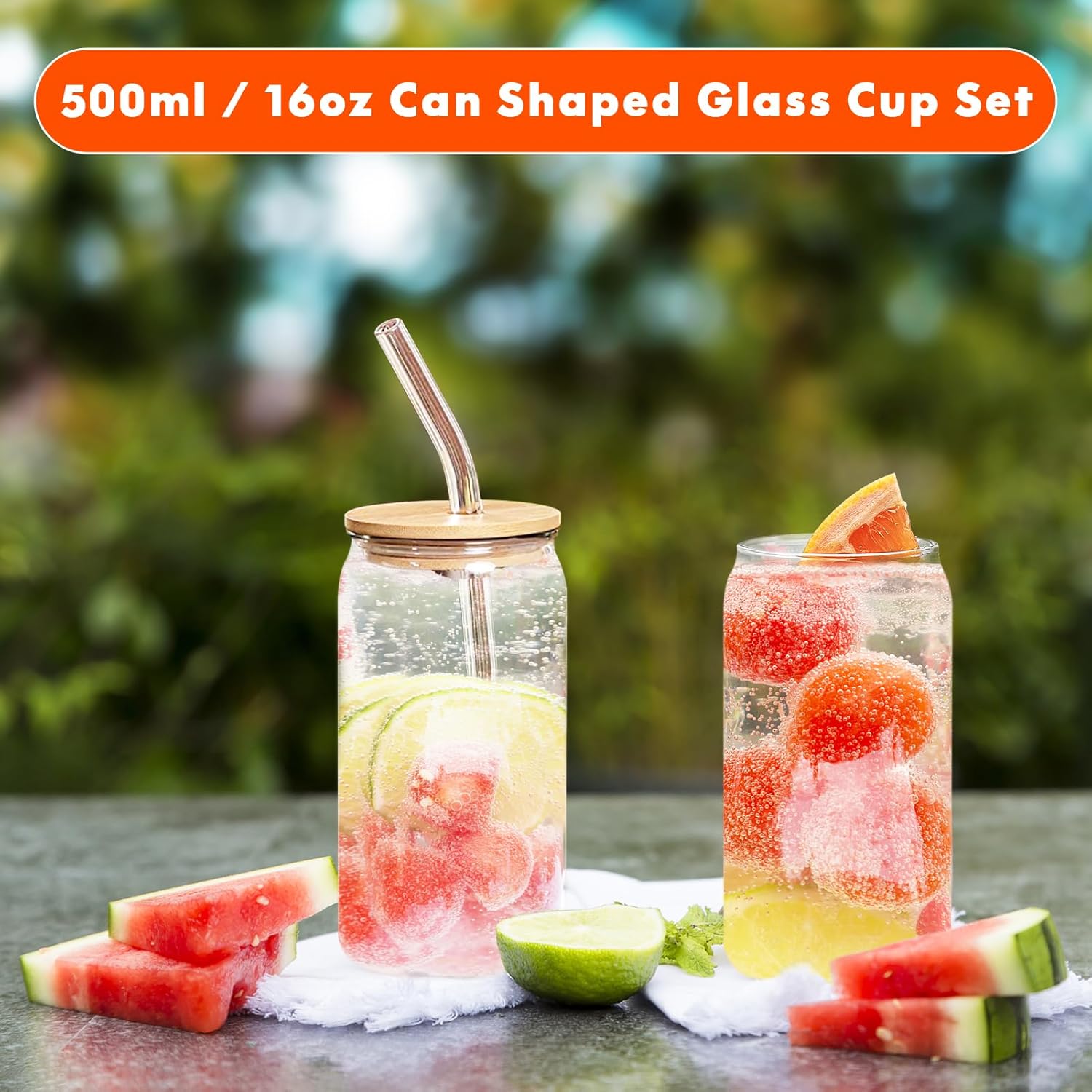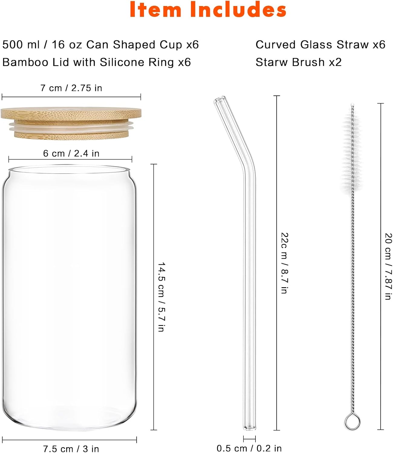 • 【Чаши за коктейли с капаци и сламки】Комплектът чаши за чай Bubble Tea включва 2 чаши за пиене от 500 мл, 2 бамбукови капака, 2 стъклени сламки за многократна употреба, 1 четка за сламка, семпъл и деликатен дизайн, много подходящ за различни напитки.