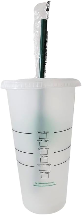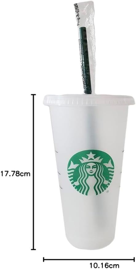 • Чаши за многократна употреба от твърда пластмаса Starbucks, 680 мл, с капак и сламка, 3 броя