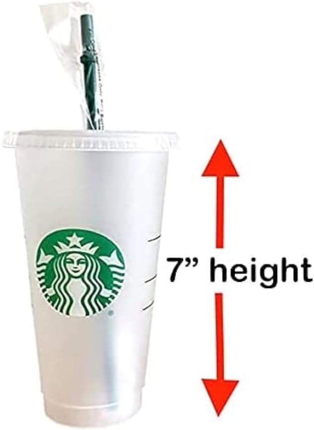 Чаши за многократна употреба Starbucks от твърда пластмаса, 680 мл, с капак и зелена сламка с капак, опаковка от 3