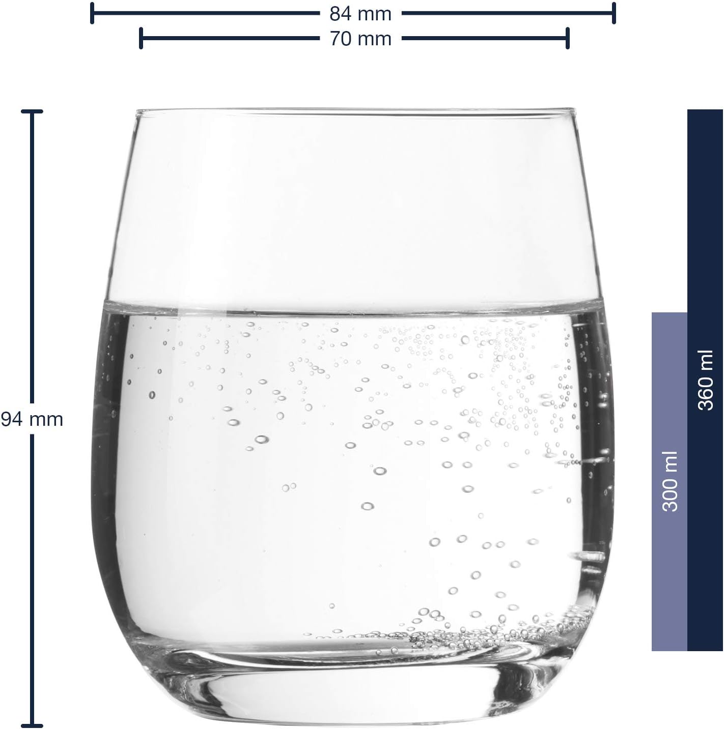 • Обхват на доставката и размери: 6 чаши за пиене, размери на чаша: 9,4 x 8,4 x 8,4 см (В x Ш x Д), Ø 7 см, 220 г, използваем обем 300 мл, 360 мл догоре