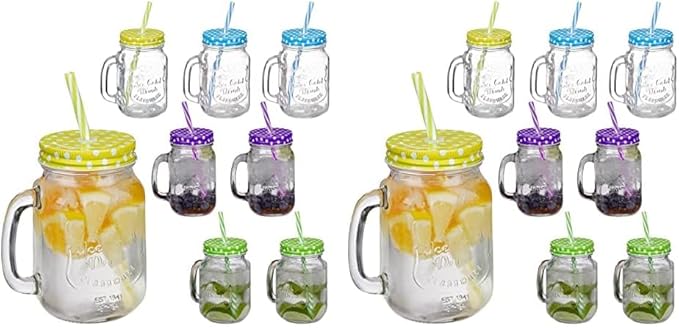 • Основни характеристики: Буркани с капак с вместимост приблизително 400 мл всеки - Идеални за лимонада, студен чай, коктейли и други
