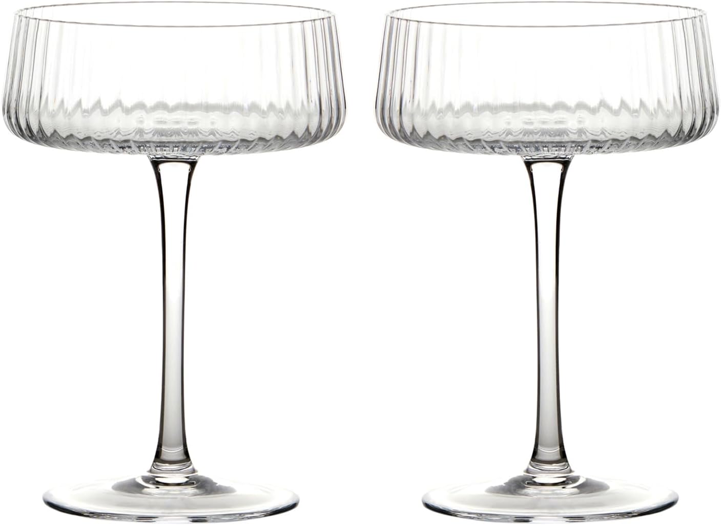 Чаши за шампанско Empire Handmade Coupe - Перфектни сервизи за партита и сватби - 250 мл - Прозрачни - Комплект от 2 елегантни чаши за шампанско