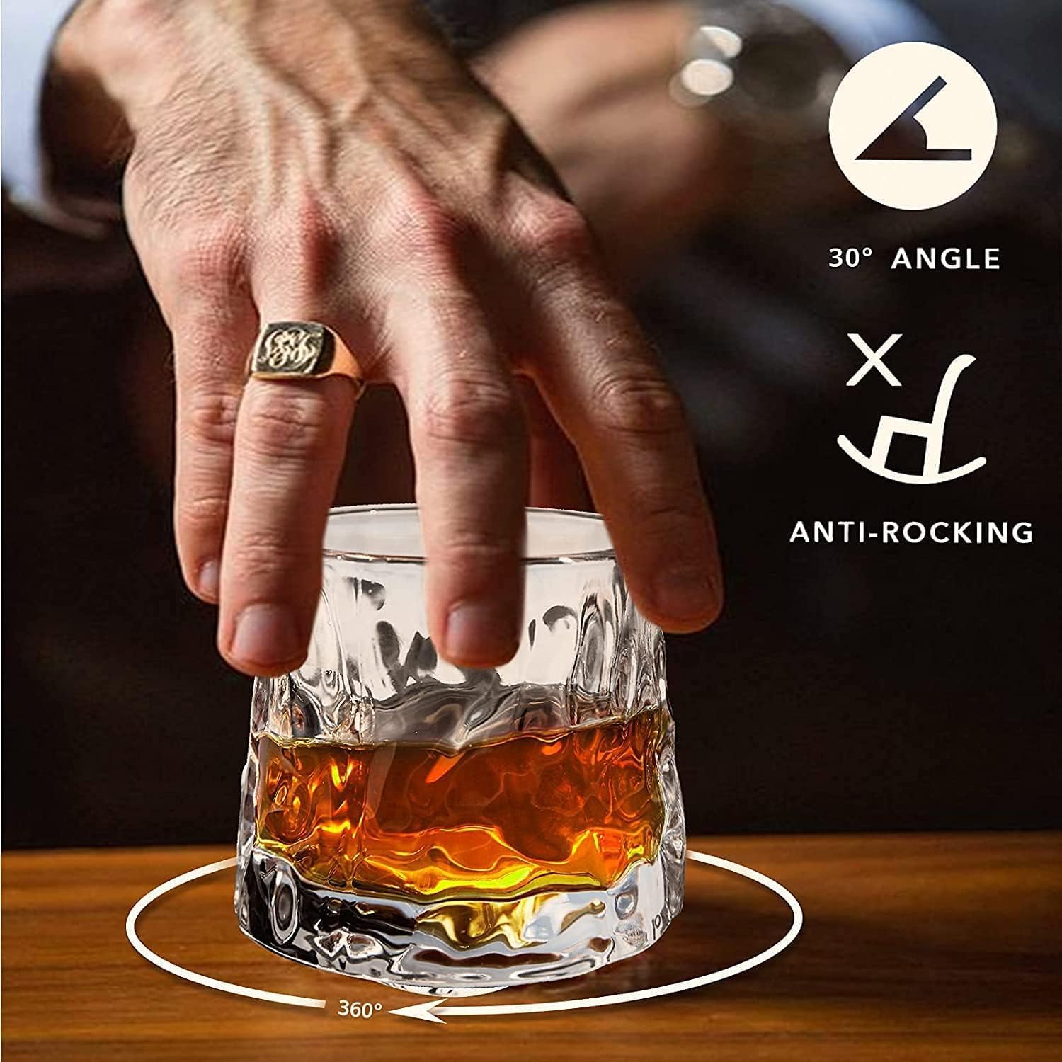 Перфектен ъгъл от 30° - Най-високата точка на полусферата образува ъгъл от 30° с ръба на чашата за вино. С дебелата си основа, тя е стабилна по време на въртене, предотвратявайки преобръщането на чашата за уиски.