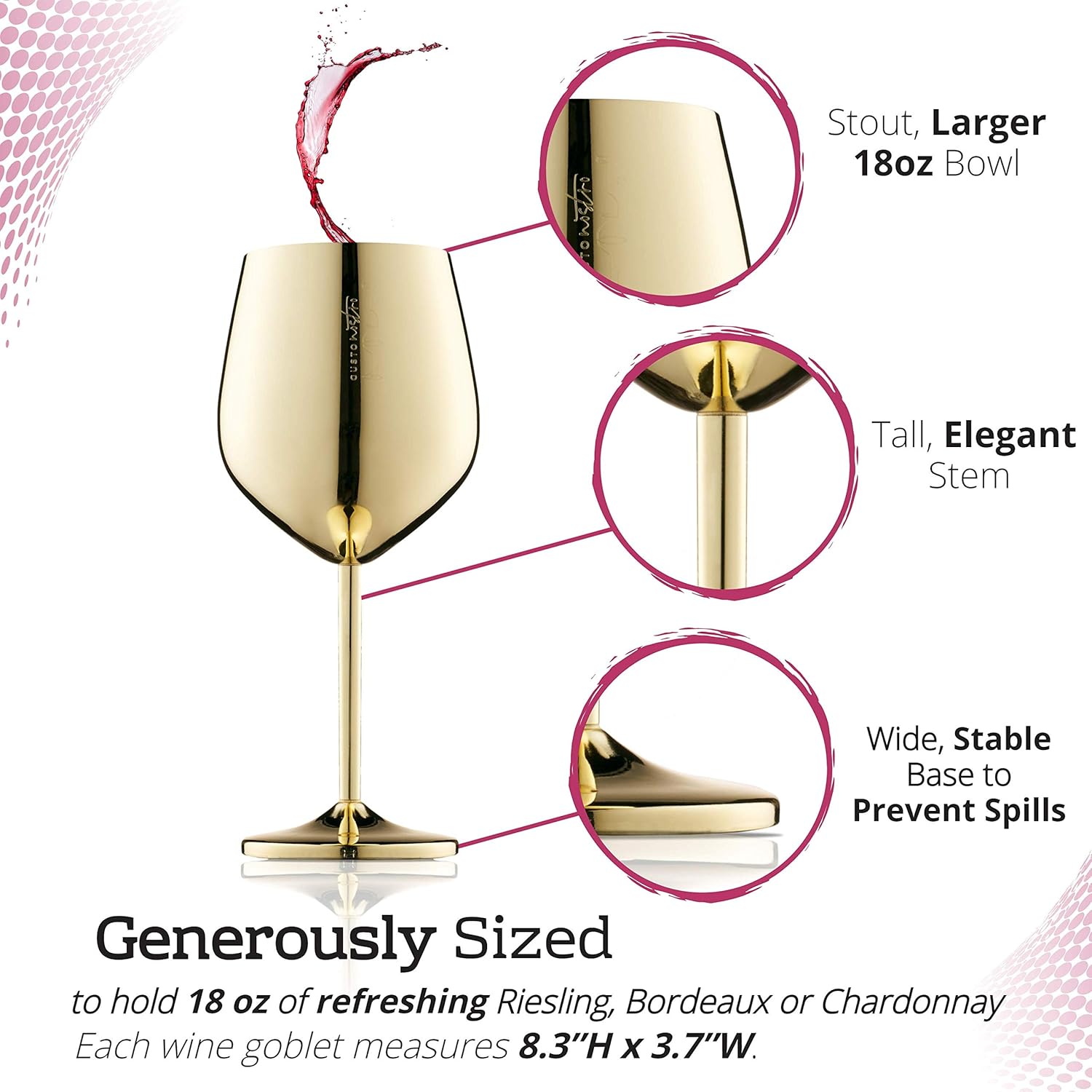 Чаши за вино Gusto Nostro от неръждаема стомана - Нечупливи чаши с вместимост 540 мл - Елегантни златни съдове за шампанско и коктейли (опаковка от 4)