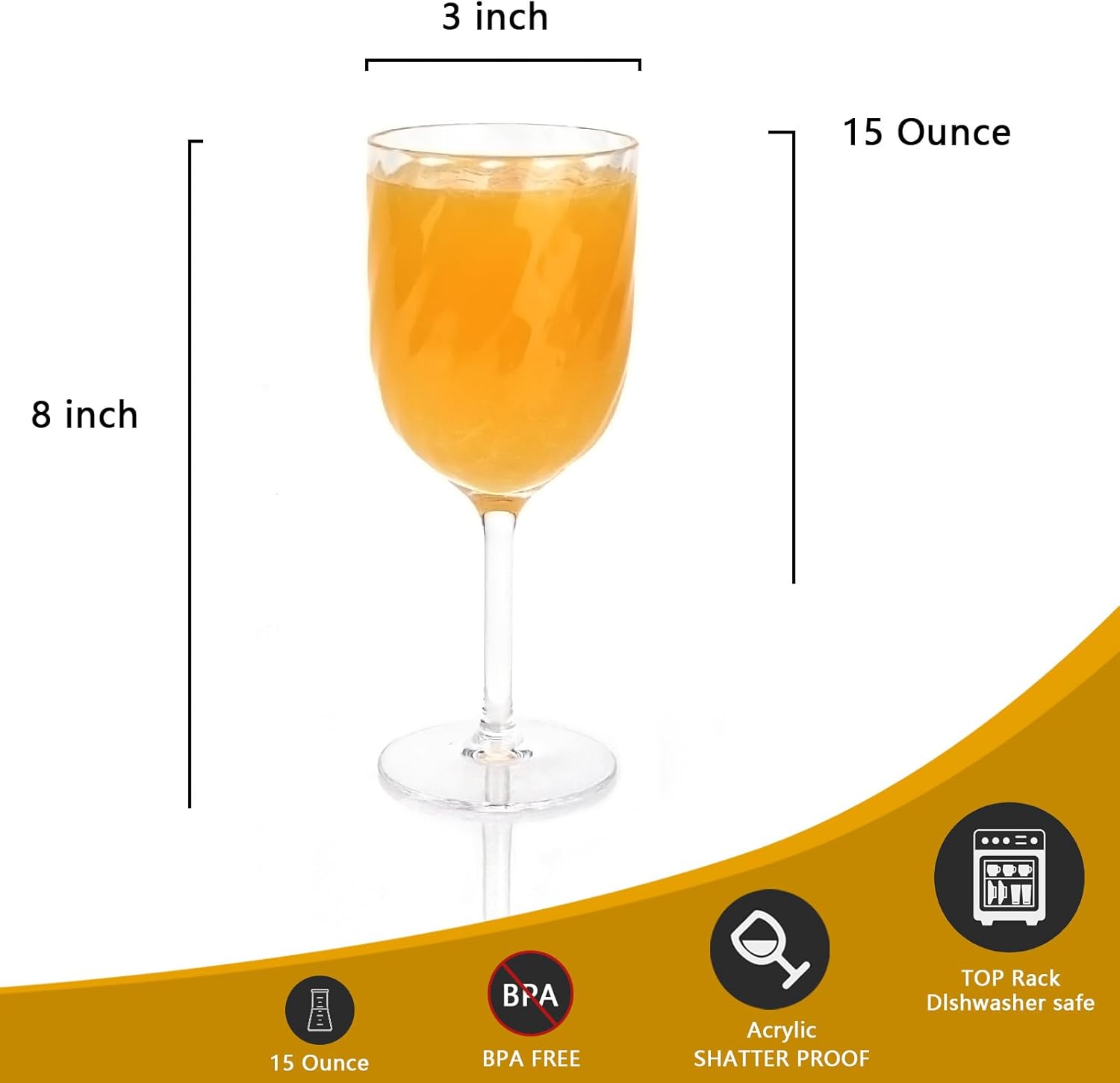 Чаши за вино и вода Yalin, нечупливи, 340 мл, изработени от акрилна пластмаса, подреждащи се, 6 броя