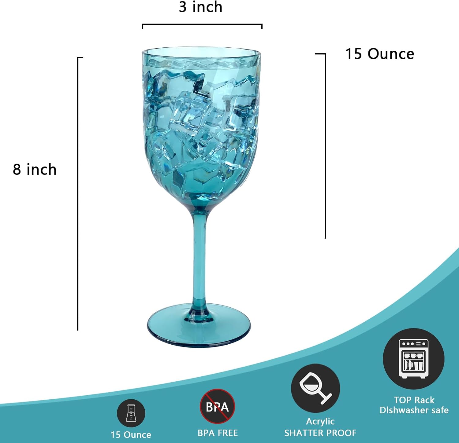 Чаши за вино и вода Yalin, нечупливи, 340 мл, изработени от акрилна пластмаса, подреждащи се, 6 броя