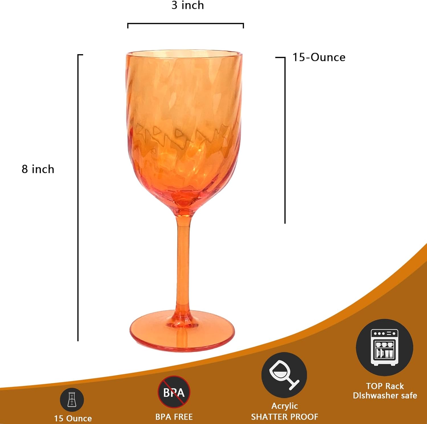 Чаши за вино и вода Yalin, нечупливи, 340 мл, изработени от акрилна пластмаса, подреждащи се, 6 броя