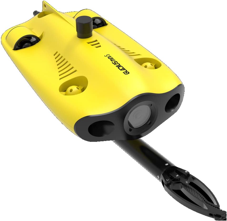 Gladius Mini S е подводен ROV/дрон за подводна фотография, научни изследвания и инспекция за безопасност. В сравнение с Gladus Mini, Gladus Mini S поддържа различни монтировки, като Grabber Claw, GoPro камера и др. С увеличаване на капацитета на батерията, животът ѝ се удължава със 70%. Патентованата технология за предотвратяване на конфликт на двигателя значително намалява вероятността от конфликт на двигателя, така че дронът да може да работи безопасно и надеждно в различни сложни подводни среди. Glamius Mini S има вградена 4K/1080p и 12-мегапикселова EIS камера със стабилизация на изображението, 2400 лумена LED светлини и сменяема 64G micro SD карта памет. Оборудван е с професионално кабелно дистанционно управление, така че дронът да може да работи стабилно и непрекъснато без прекъсвания на сигнала. Компактният корпус от алуминиева сплав (тегло по-малко от 3 кг) позволява работа от един човек и бърза употреба в рамките на 3 минути. Gladius Mini S е вашият преносим, лесен за употреба и надежден подводен ROV. Други характеристики включват: максималната скорост е 4 възела, максималната дълбочина е 200 метра и максималният хоризонтален радиус е 200 метра (660 фута). Двигател против замазка: патентованата технология на двигателя против замазка значително намалява вероятността двигателят да заседне в пясъка, позволявайки безопасна и надеждна работа във всякакви сложни подводни среди. Сменяема 64G Micro SD карта памет: изтегляне по всяко време и навсякъде. 4K+EIS стабилизация на изображението, бленда F1.8, 4 часа време на работа. Кабелна връзка с дистанционното управление - Дистанционното управление и мобилният телефон/таблетният компютър са свързани директно чрез кабел, което прави предаването по-стабилно и без прекъсване.