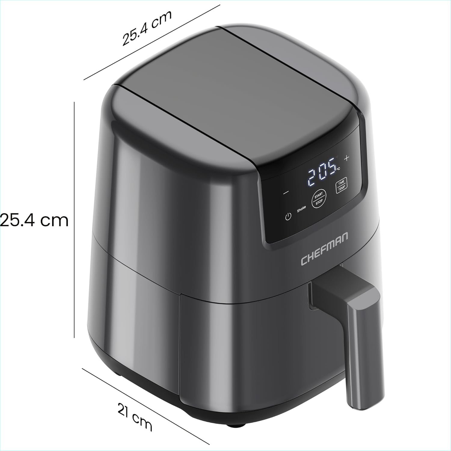 Chefman 2L мини фритюрник с горещ въздух, компактен, незалепващ и подходящ за съдомиялна машина, бързи и лесни ястия, с дигитален таймер и напомняне за разклащане, сив