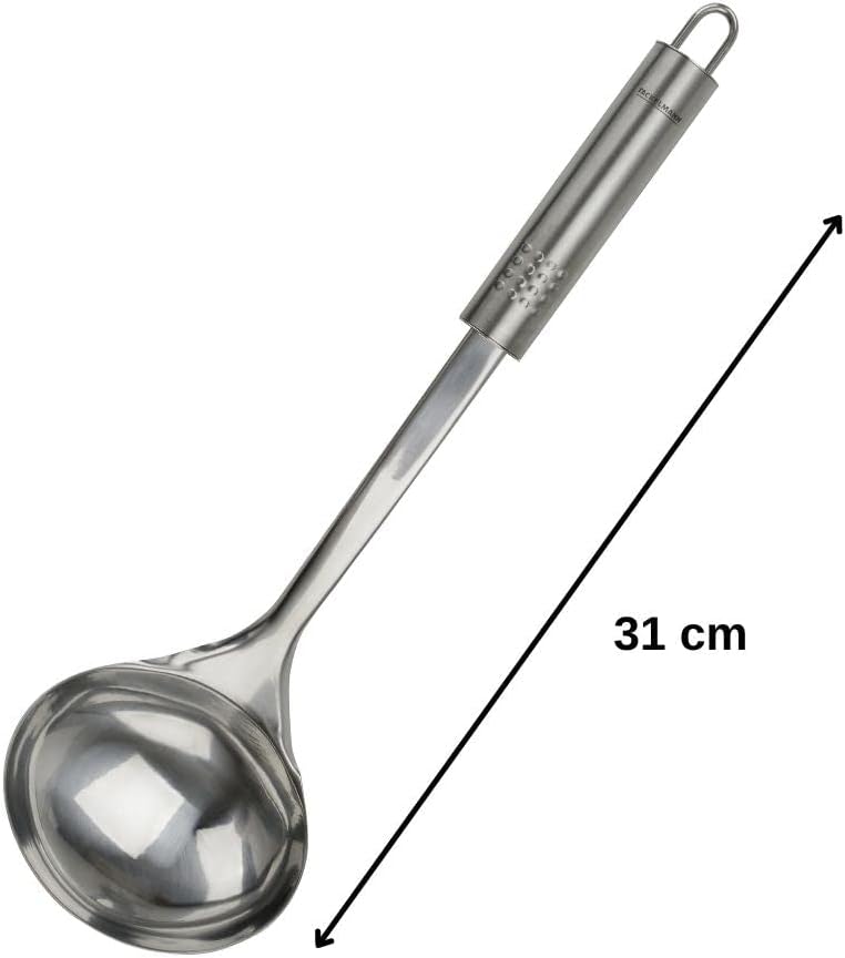 Черпак Fackelmann 32 см с овална дръжка, практичен черпак за супа, изработен от неръждаема стомана, с ергономична дръжка (цвят: сребрист), количество: 1 брой