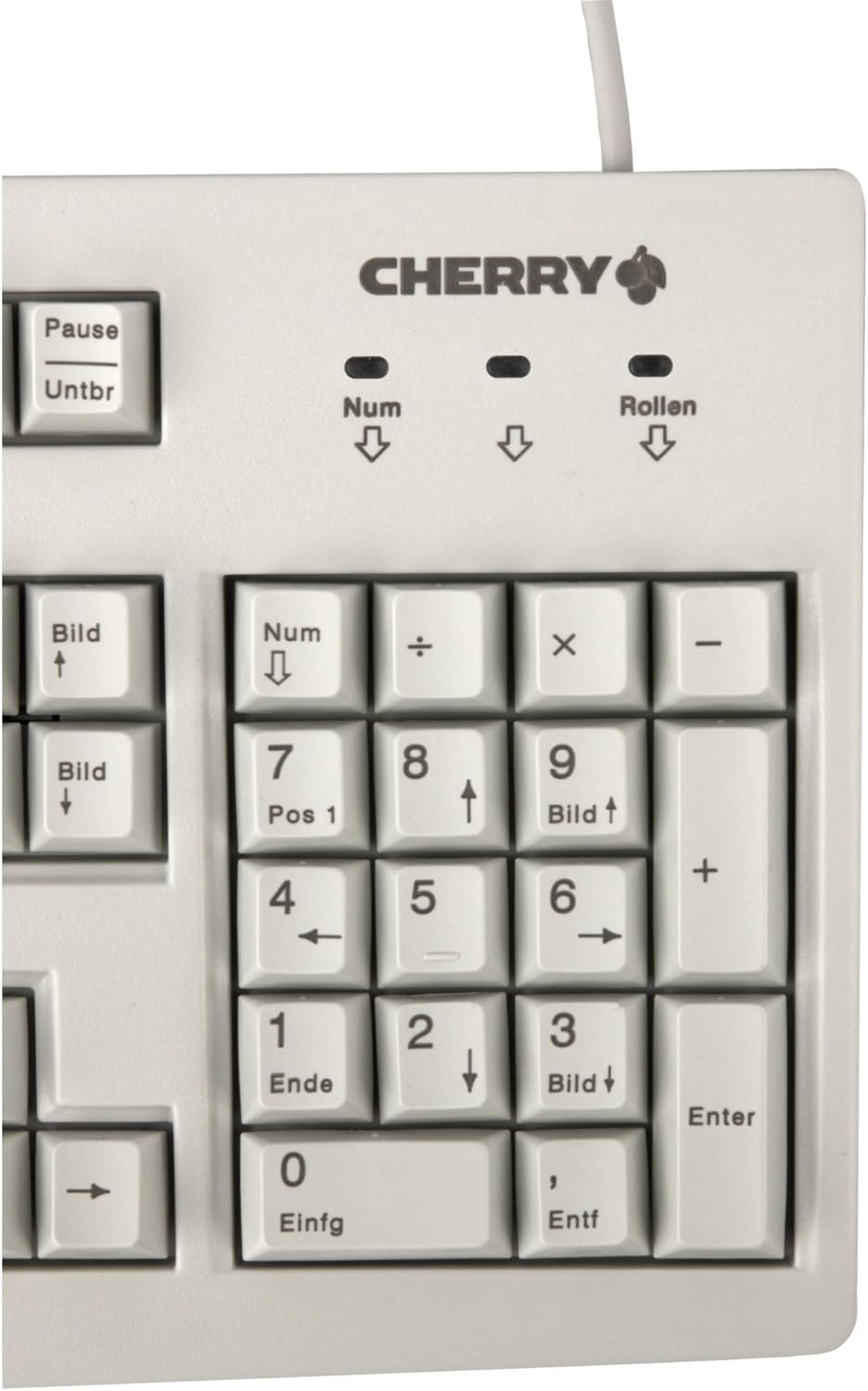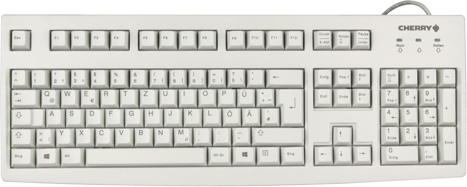 CHERRY G83-6105, Кабелна клавиатура за индустриални приложения, Немска подредба (QWERTZ), Устойчиви на износване клавиши, Лесна за почистване, Рециклируема, Светло сива