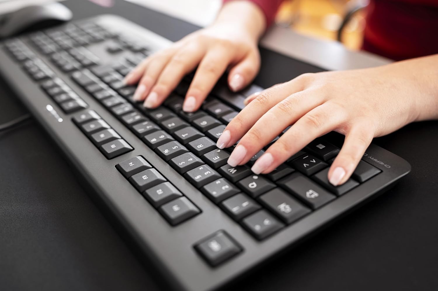 • Тихо натискане на клавишите: Късоходните софтуерни клавиши позволяват прецизно и бързо писане, така че можете да работите тихо дори в офис с отворен план и много компютри.