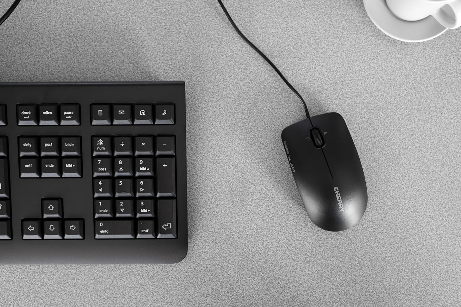 Cherry KC 1000 USB клавиатура с плосък дизайн, кабелна, "Синият ангел", GS одобрение, QWERTZ бизнес клавиатура, немска подредба, черна