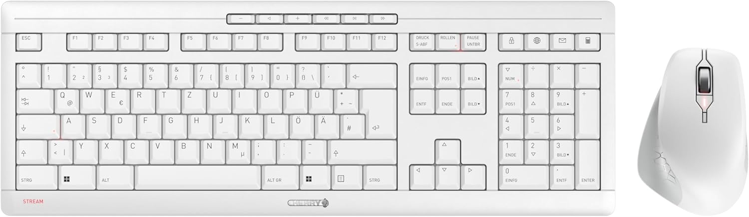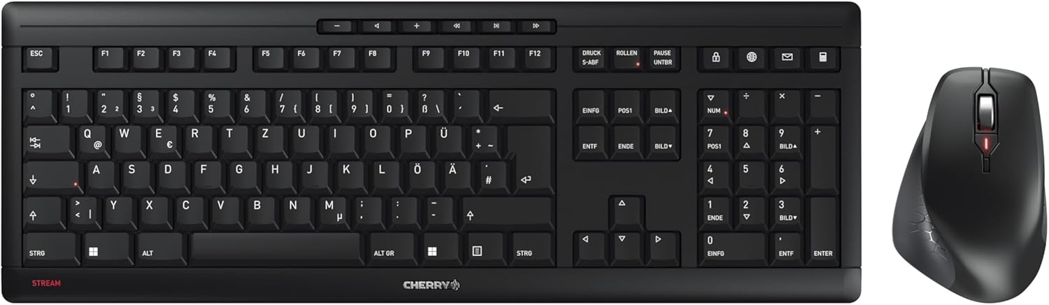 CHERRY STREAM DESKTOP COMFORT, Комплект безжична клавиатура и мишка, Немска подредба (QWERTZ), 2.4 GHz безжична, Тихи клавиши, Ергономична мишка за дясна ръка, Черна
