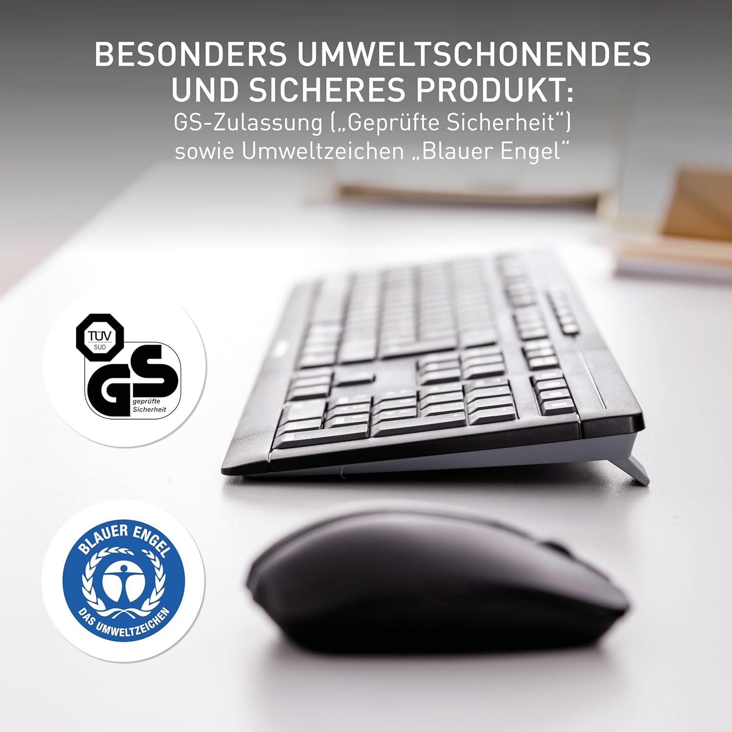 • Висококачествена безжична клавиатура с подходяща мишка: изключително тиха, презареждаща се и перфектно съчетана. Връзката е безжична чрез 2.4 GHz безжична връзка с AES-128 криптиране.