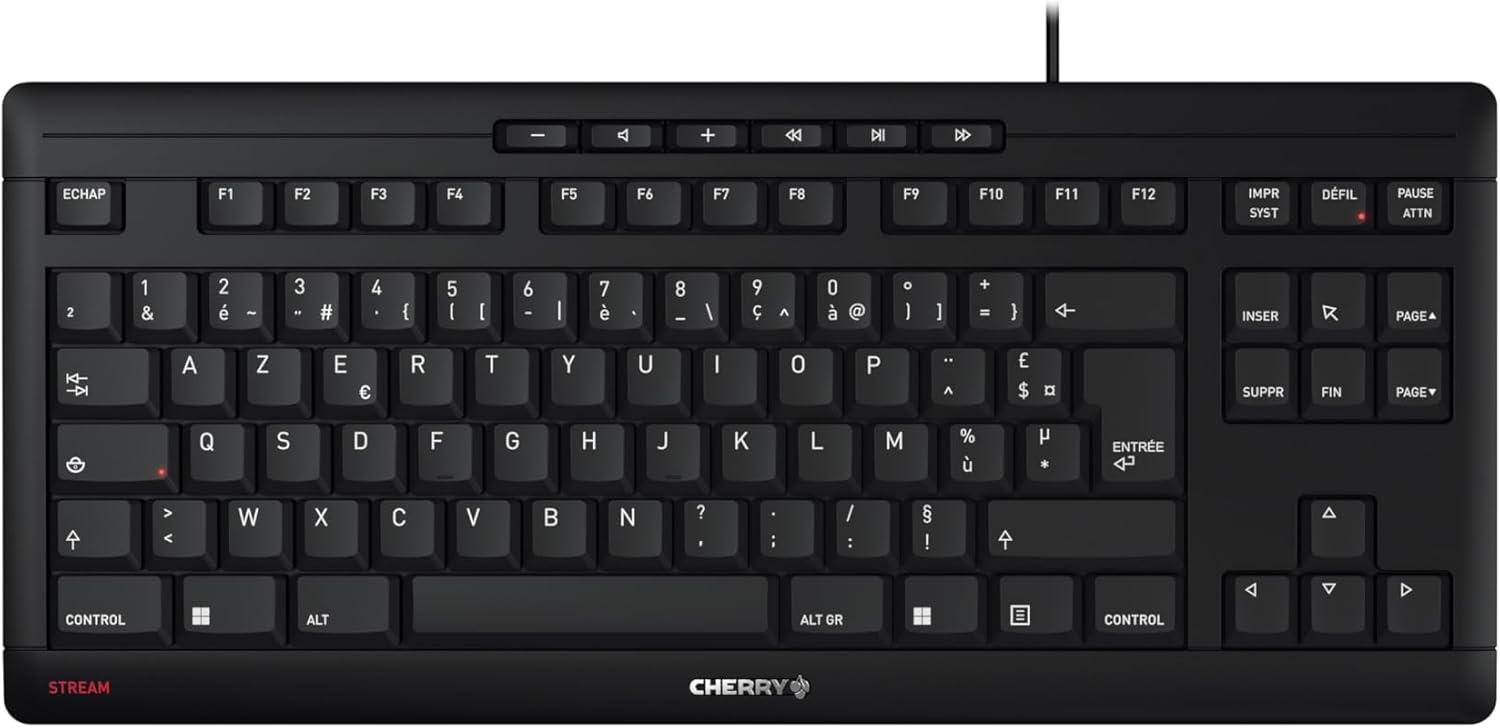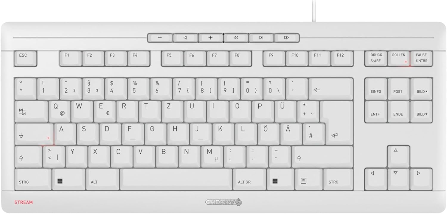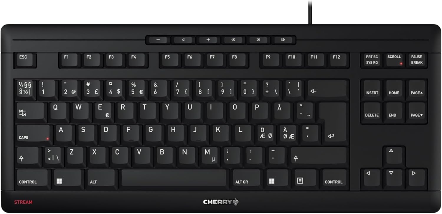 CHERRY STREAM KEYBOARD TKL, Кабелна клавиатура без цифров блок, Немска подредба (QWERTZ), Тихо натискане на клавишите, Уникално усещане при писане, Черен