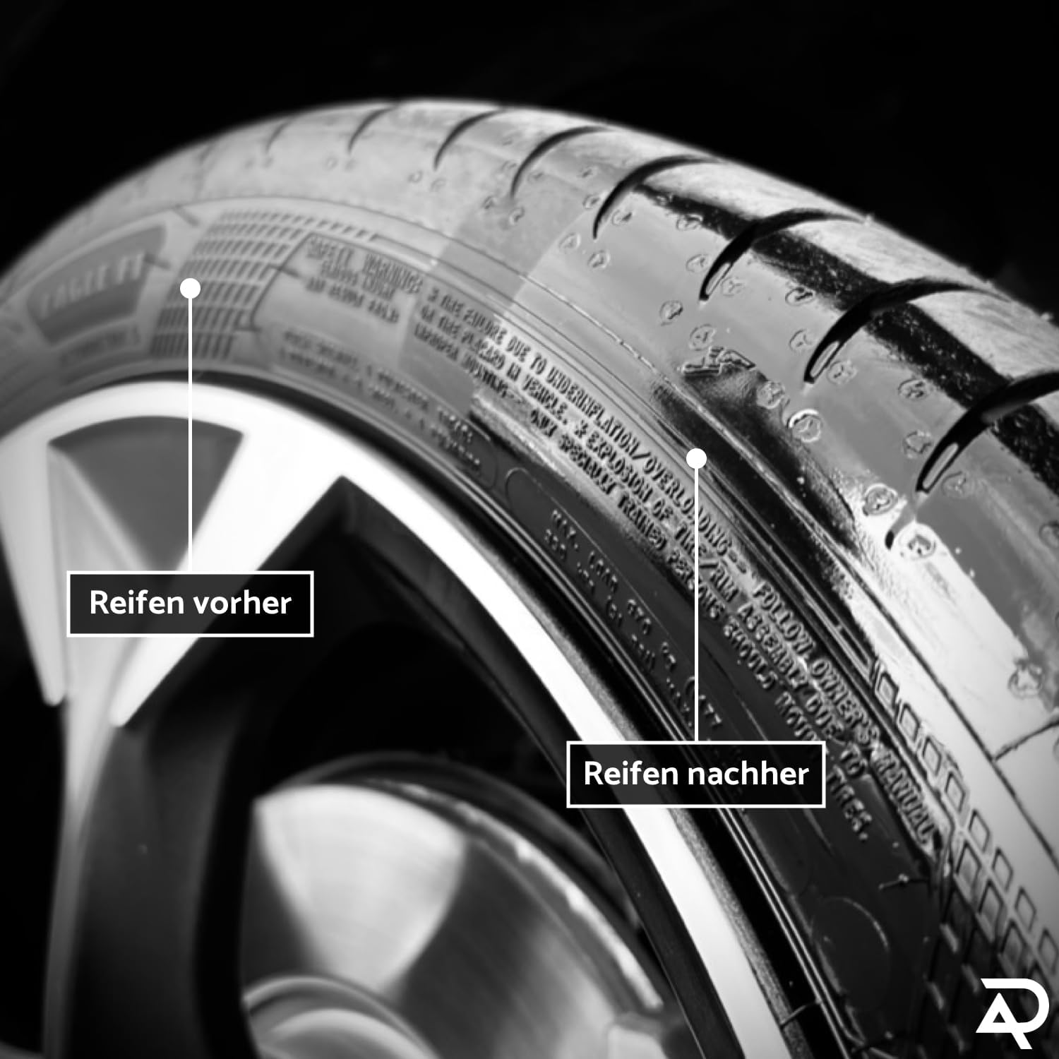 • Ефективно приложение: придайте на гумите си нов блясък и грижа. С фините влакна на нашата четка-апликатор можете да достигнете до всяка точка на гумите си.