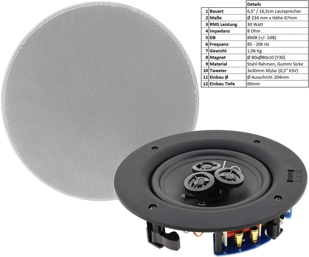 Фин звук за вашите слушатели. Широко използван в офиси, конферентни зали и лекарски кабинети. Лесен за монтаж в кухини, тавани или стени. Общо 2 здрави и издръжливи скоби фиксират високоговорителя сигурно и дискретно. Технически данни: метална рамка с метална предпазна решетка, 2 здрави скоби за монтаж в кухини (напр. леки стени, окачени тавани и др.). Мощност: 15W rms приблизително 60 W музикална мощност, импеданс: 8 ома, звуково налягане до 91 dB, честотен диапазон 100 Hz - 20 kHz, свързване чрез кабелна скоба, вграден широколентов високоговорител с диаметър 4 инча/10 см, външен диаметър 135 мм, монтажен диаметър 108 мм, дълбочина 53 мм, тегло 414 г