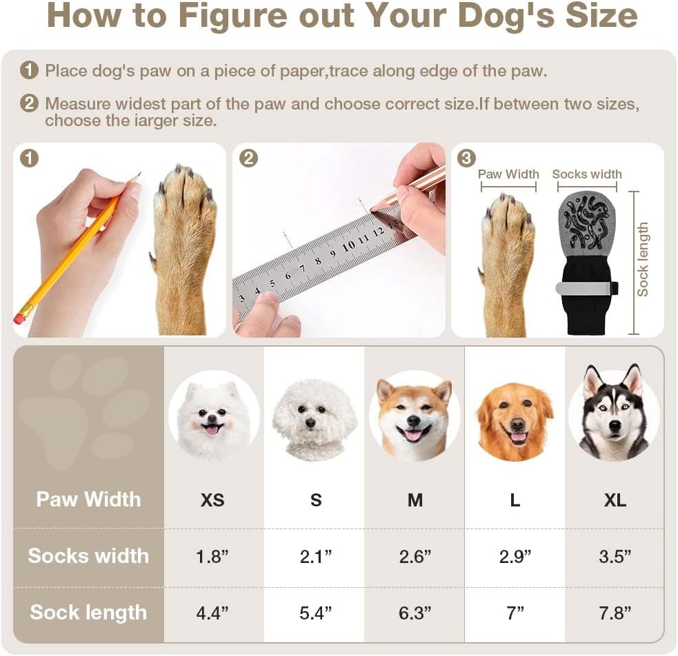 Неплъзгащи се кучешки чорапи, изработени от издръжлив материал с отлична еластичност и висок комфорт при носене, поддържат лапите на вашето куче топли и ги предпазват от остри предмети. Те осигуряват многостранна защита за вашите лапи: от горещи и студени повърхности, от драскотини по мебели и подове и от замърсявания на открито.