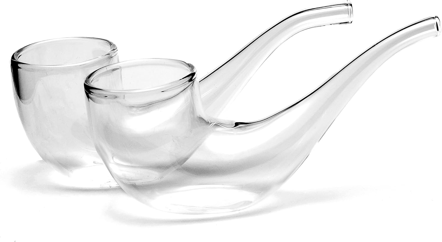 Вдигнете тръбичката и се насладете на напитката си с финес, използвайки тези ръчно изработени стъклени лули! Лесната за пълнене купичка на тръбичката ще освободи аромата на вашата напитка, докато пиете през тясната тръбичка, подобрявайки вкуса. Лулата стои изправена на масата в ръката ви между глътките или можете да използвате купичката за затопляне на алкохол и др. Изработена от издръжливо боросиликатно стъкло, всяка лула е с вместимост 75 мл и е с размери 15 x 6 см. Две лули са включени в елегантна подаръчна кутия.