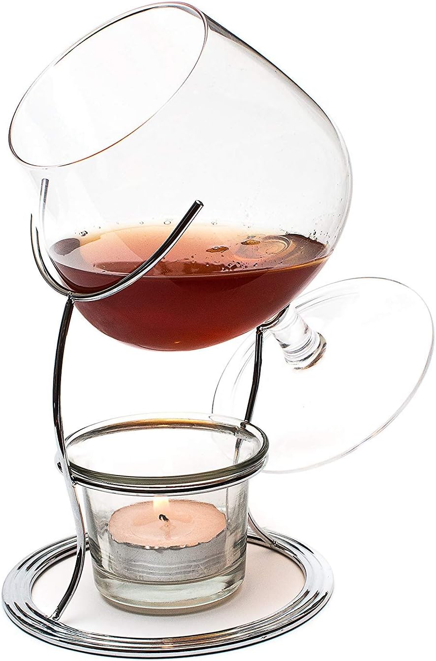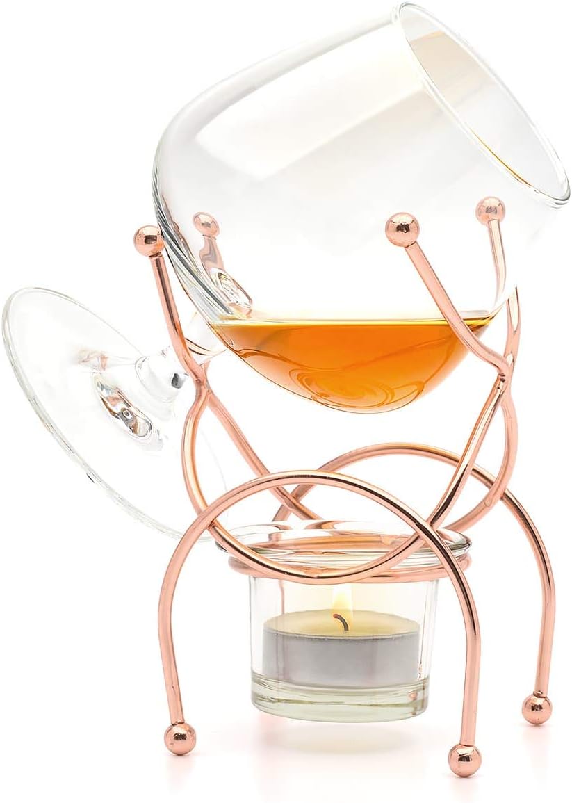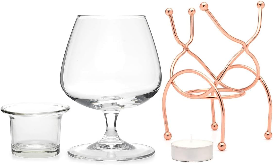 CKB LTD Нагревател за чаши за бренди и коняк, комплект за пиене Premium с чаена свещ и метален държач (мед)