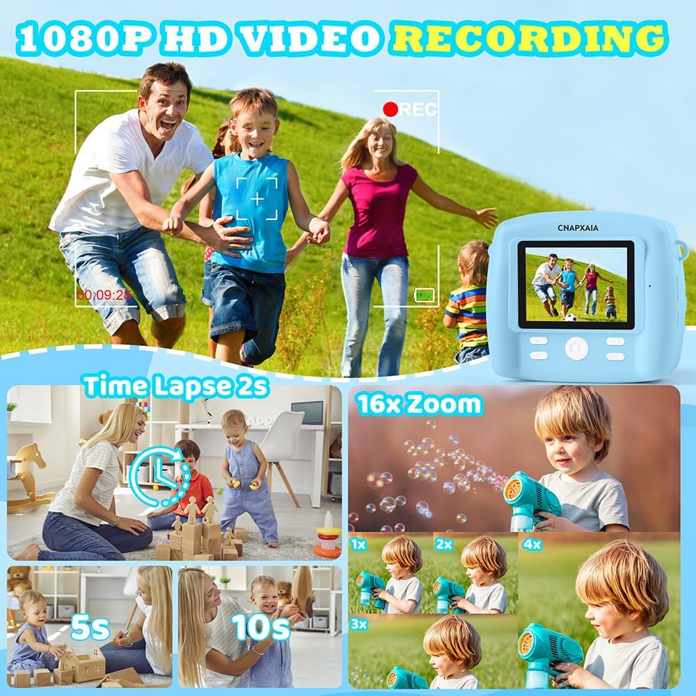 • Детски фотоапарат „всичко в едно“ за моментални снимки: детският фотоапарат Cnapxaia съчетава цифрова фотография с технология за печат без мастило. Децата могат да съхраняват хиляди ярки цветни снимки на 32GB карта памет и да отпечатват черно-бели снимки мигновено. Комплектът включва 3 ролки хартия за печат без BPA, 6 цветни молива, каишка за носене и USB-C кабел - идеални за творческа игра и безкрайни артистични изследвания.