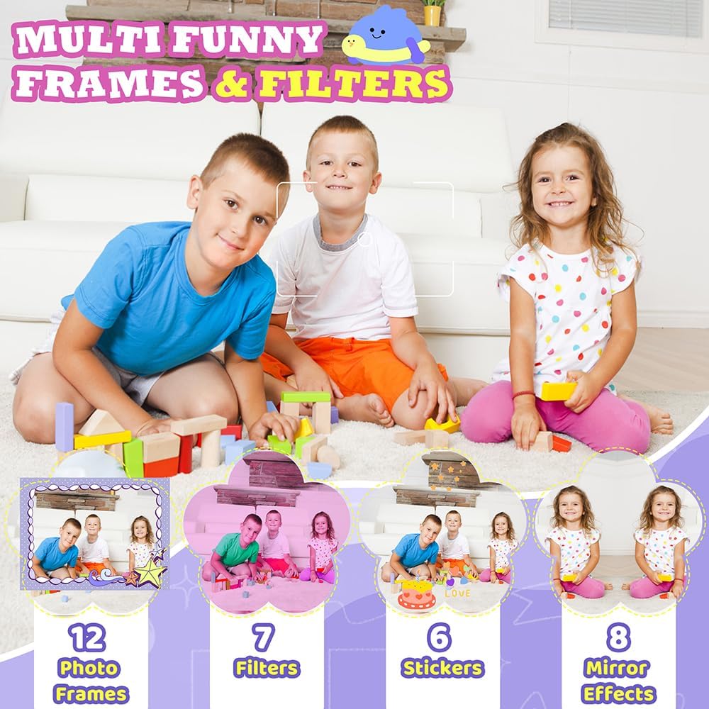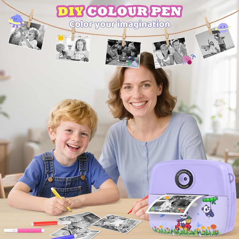 • Креативна фотокамера за моментално заснемане на изображения с 2,4-инчов екран и 1080P видео: тази детска камера с моментално отпечатване има 2,4-инчов екран, 1080P видеозапис, 16x увеличение, филтър и забавна рамка. Като образователна играчка за деца на възраст 3-12 години, тя предлага time-lapse фотография, пъзел игри и MP3 плейър, за да насърчи креативността и да държи децата заети с фотография, рисуване и музика.