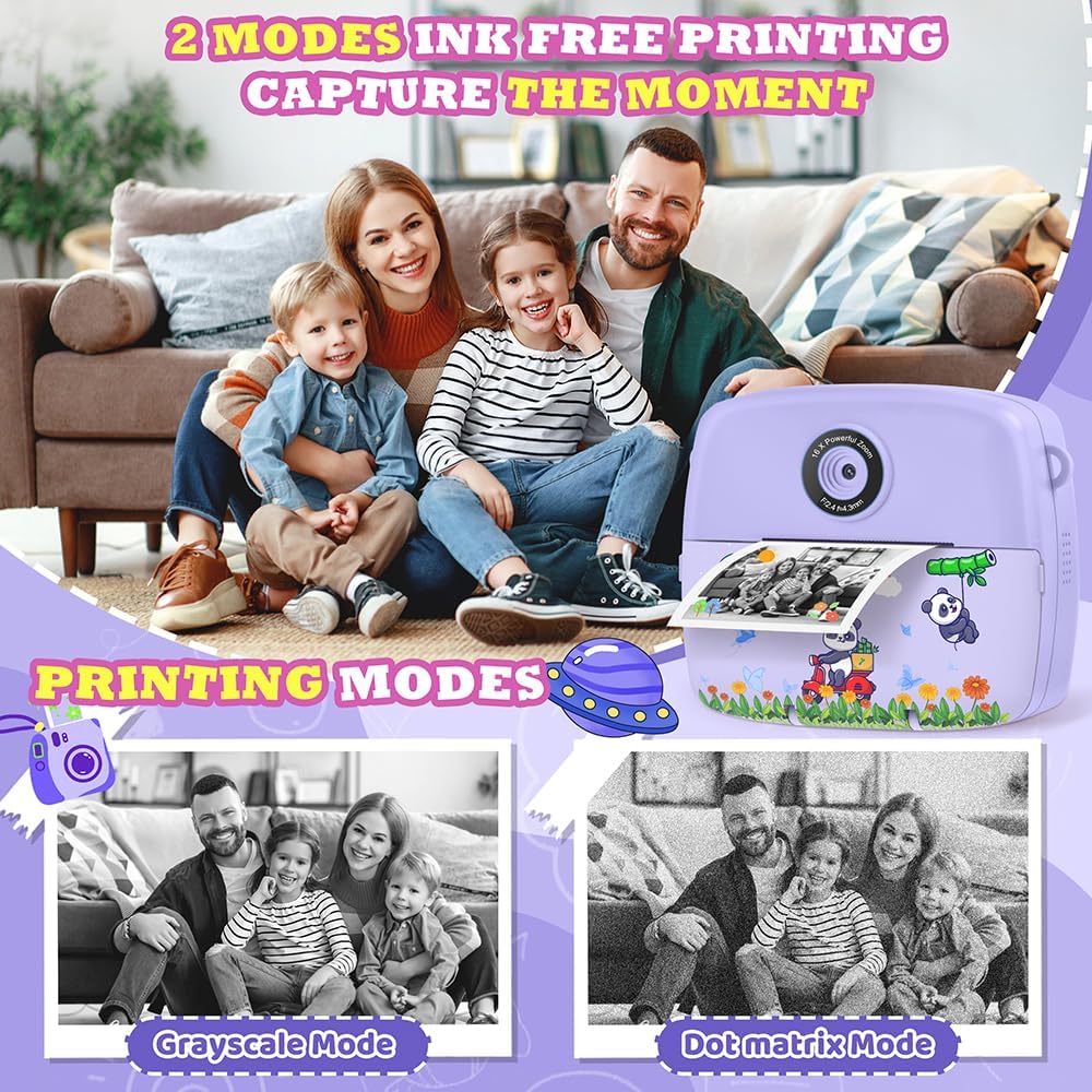 • Детски фотоапарат „всичко в едно“ за моментални снимки: детският фотоапарат Cnapxaia съчетава цифрова фотография с технология за печат без мастило. Децата могат да съхраняват хиляди ярки цветни снимки на 32GB карта памет и да отпечатват черно-бели снимки мигновено. Комплектът включва 3 ролки хартия за печат без BPA, 6 цветни молива, каишка за носене и USB-C кабел - идеални за творческа игра и безкрайни артистични изследвания.