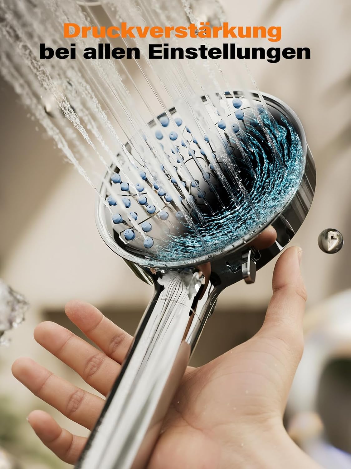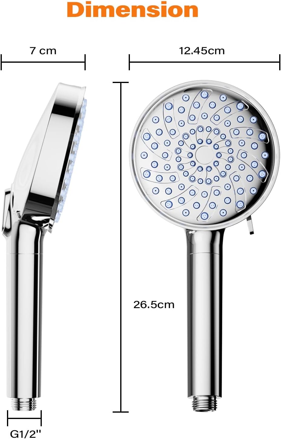 • Отличен външен дизайн: душът с високо налягане има голям панел от 124 мм x 124 мм и покрива широк спектър от душове, така че можете да се насладите на процеса на душ. Водоспестяващата душ глава е изработена от ABS материал, който има висока твърдост, устойчивост на топлина и износване, като по този начин удължава живота на душа. Хромираният външен вид е подходящ за различни декоративни стилове.