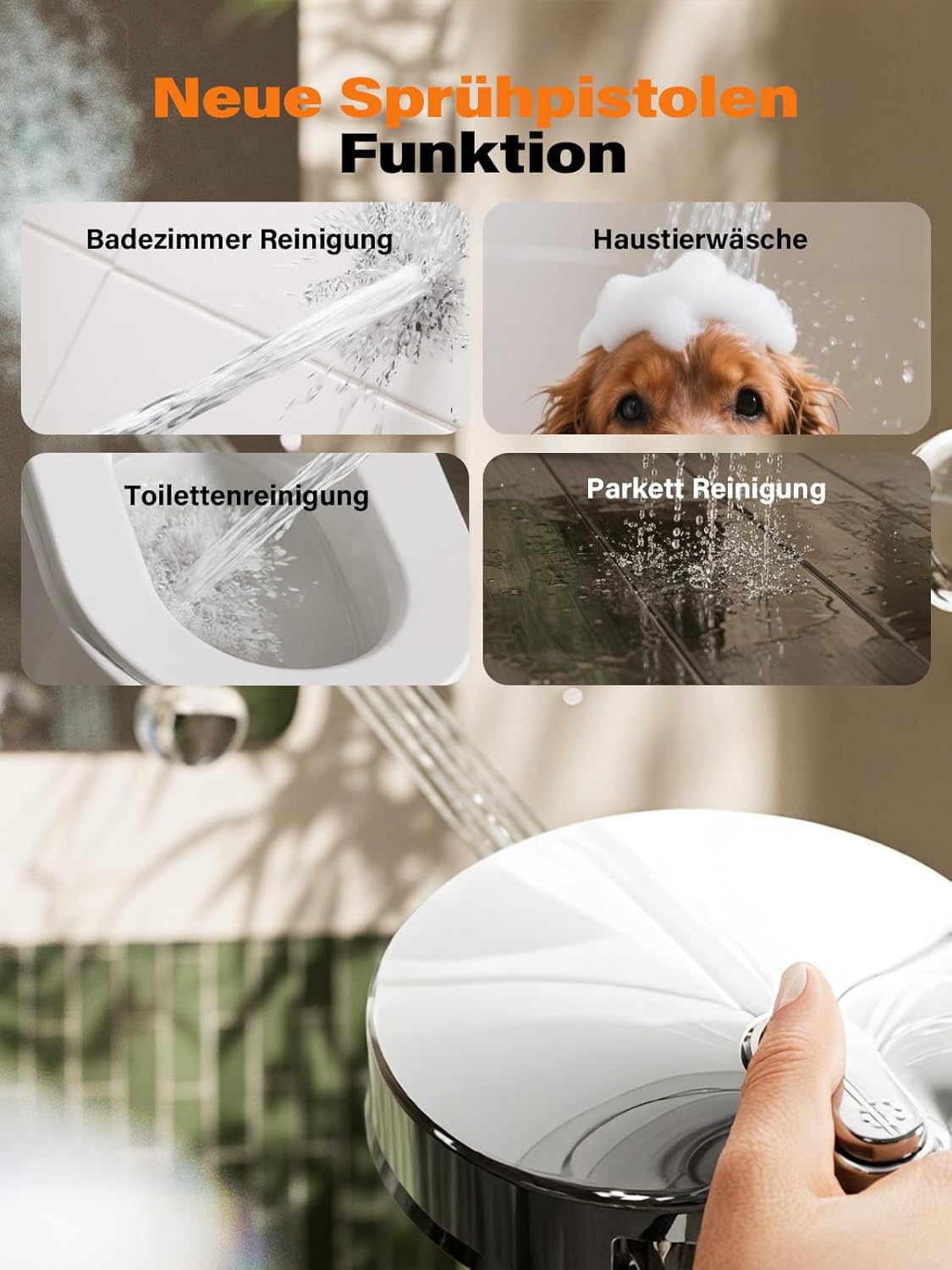 • Лесен за монтаж: Лесен за самостоятелно монтиране и демонтиране, не е необходим водопроводчик. Идеален за ежедневна употреба и редовно почистване. Има универсален резбован интерфейс G1/2, а душовата глава е оборудвана с 1,5 м маркуч против прегъване.