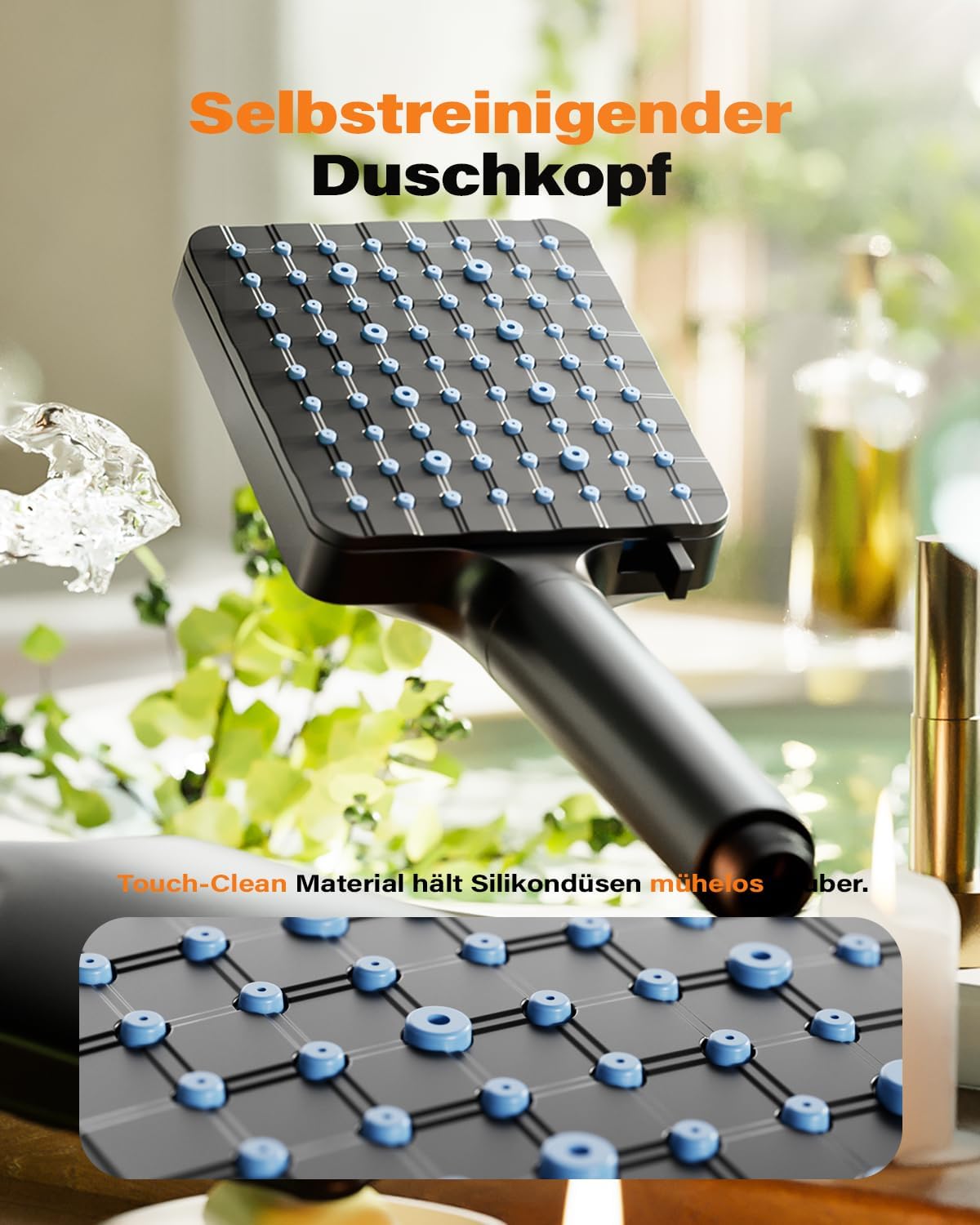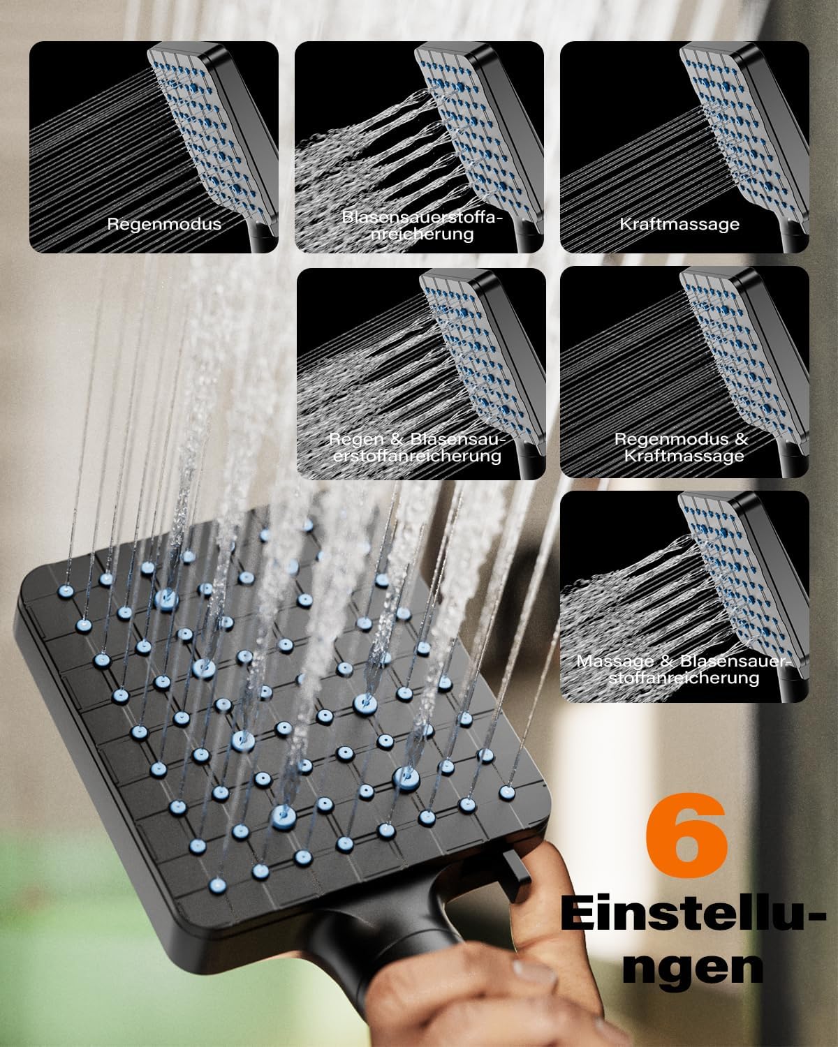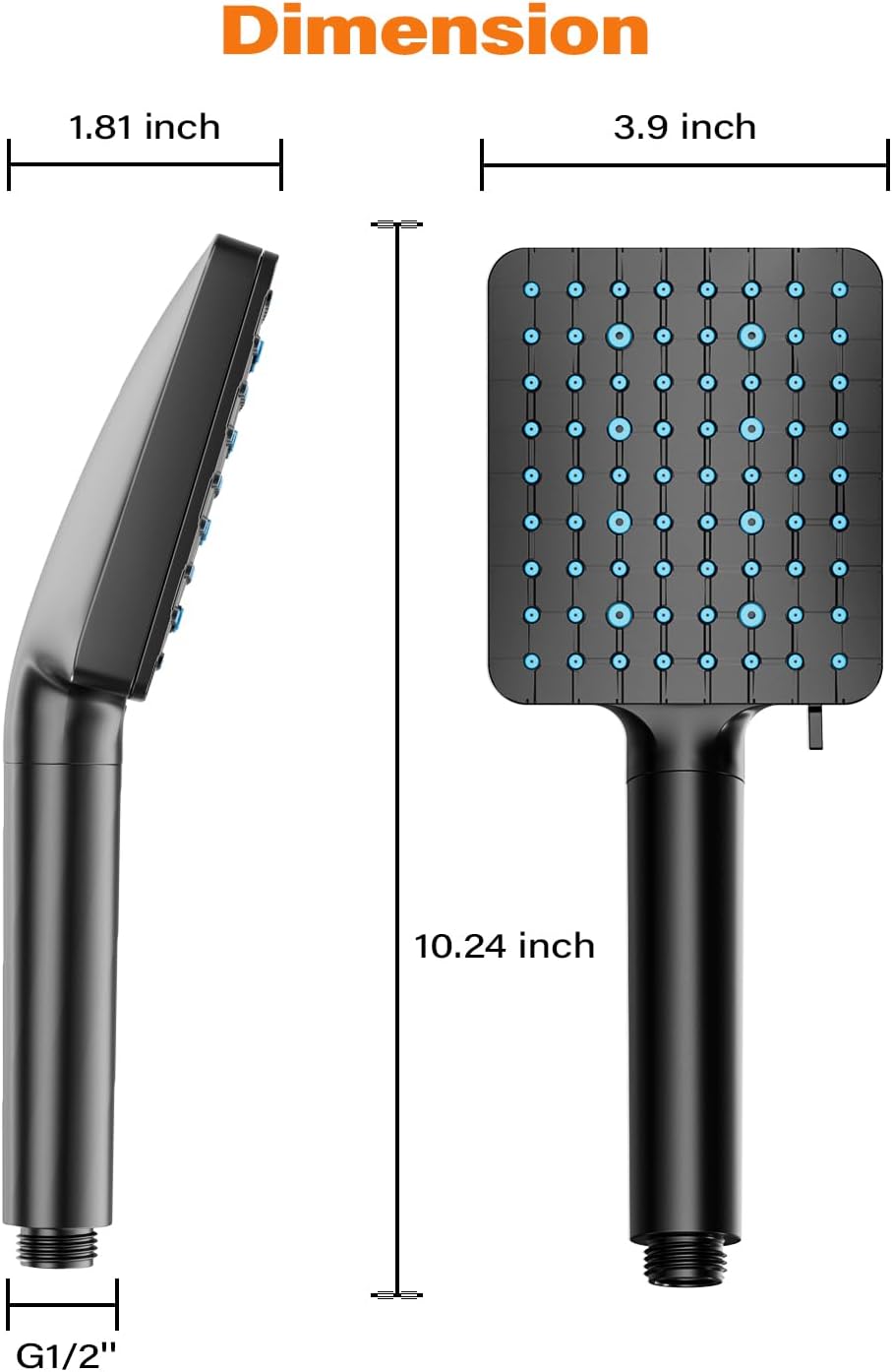 • Високо налягане и пестене на вода: Тази душ глава използва уникална вътрешна структура и технология за налягане, както и равномерно разпределение на силиконовата дюза, което осигурява по-силен воден поток и стабилно водно налягане, като същевременно пести вода. Душ главата с високо налягане с голям панел осигурява напълно покрито изживяване при дъжд, така че можете да се насладите на комфортен дъжд.
