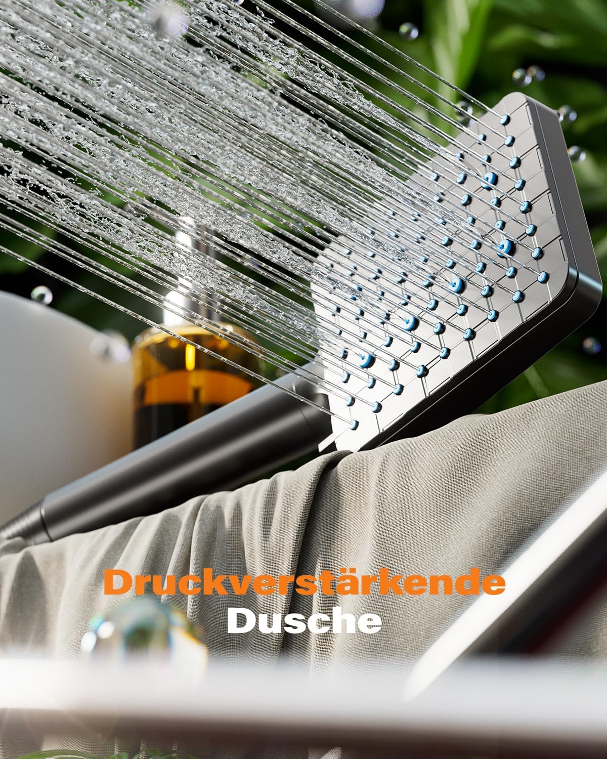 • Отличен външен дизайн: душът с високо налягане има голям панел от 124 мм x 124 мм и покрива широк спектър от душове, така че можете да се насладите на процеса на душ. Водоспестяващата душ глава е изработена от ABS материал, който има висока твърдост, устойчивост на топлина и износване, като по този начин удължава живота на душа. Хромираният външен вид е подходящ за различни декоративни стилове.