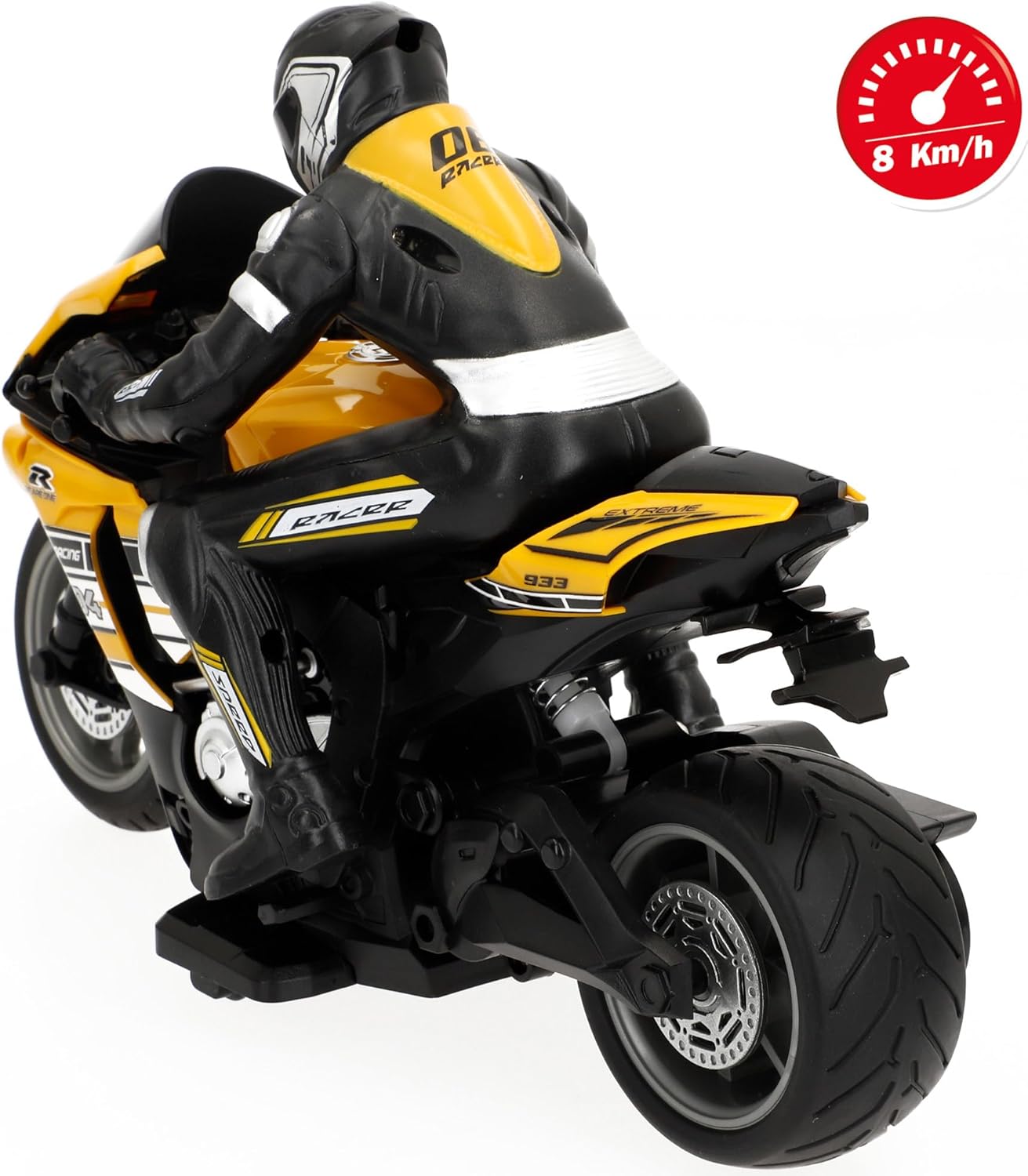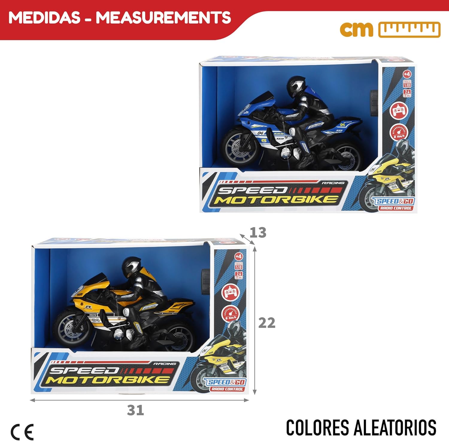 Изпитайте тръпката от състезанията с RC мотоциклета Speed & Go! Със спортен и реалистичен дизайн в мащаб 1:10 и включен драйвер, той достига до 8 км/ч и има обхват от 15 метра за бързи състезания. Дистанционното управление с 2.4 GHz 33 канала позволява състезание без смущения със стабилен и прецизен контрол. Освен това има регулиране на посоката за повече реализъм. Предлага се в два различни цветови модела (жълт или син), идеални за малки фенове на скоростта и екшъна.